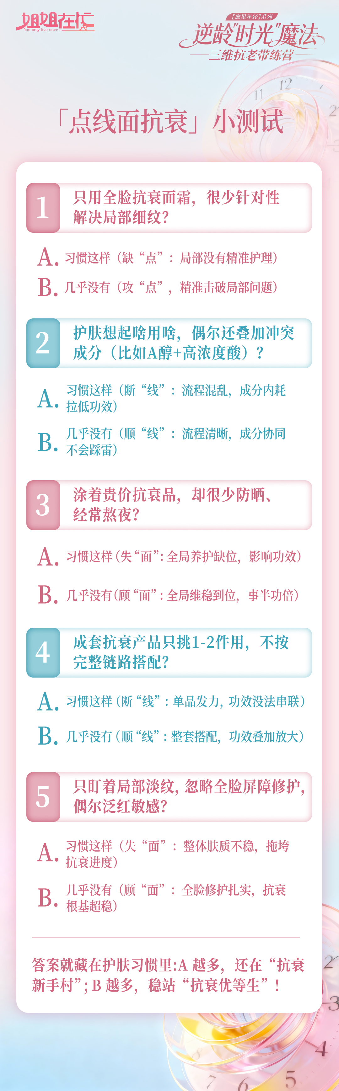 都测完了么,答案图来了,看看谁是抗衰优等生~