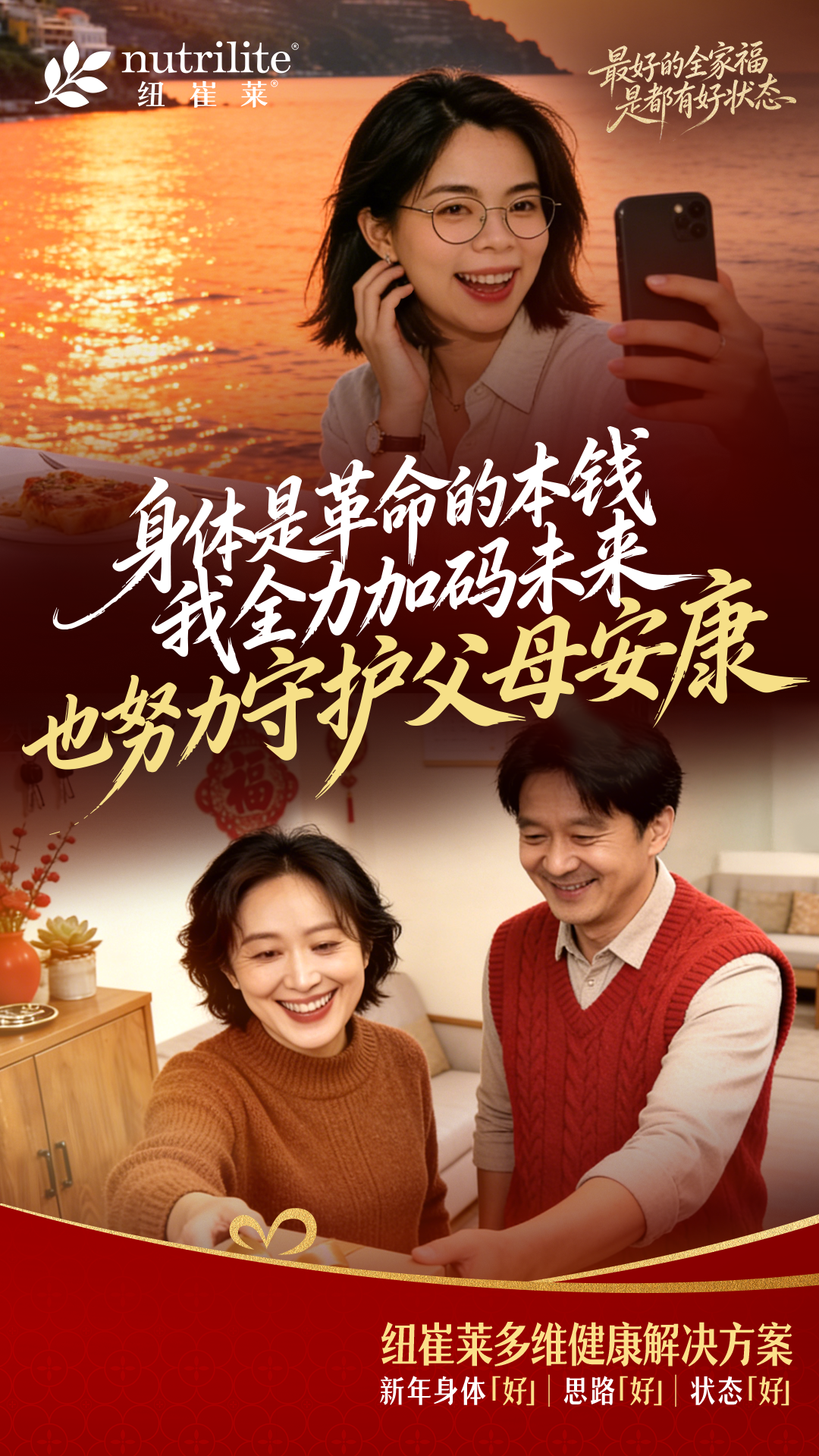 纽崔莱,新年守护全家好状态海报模版&产品素材