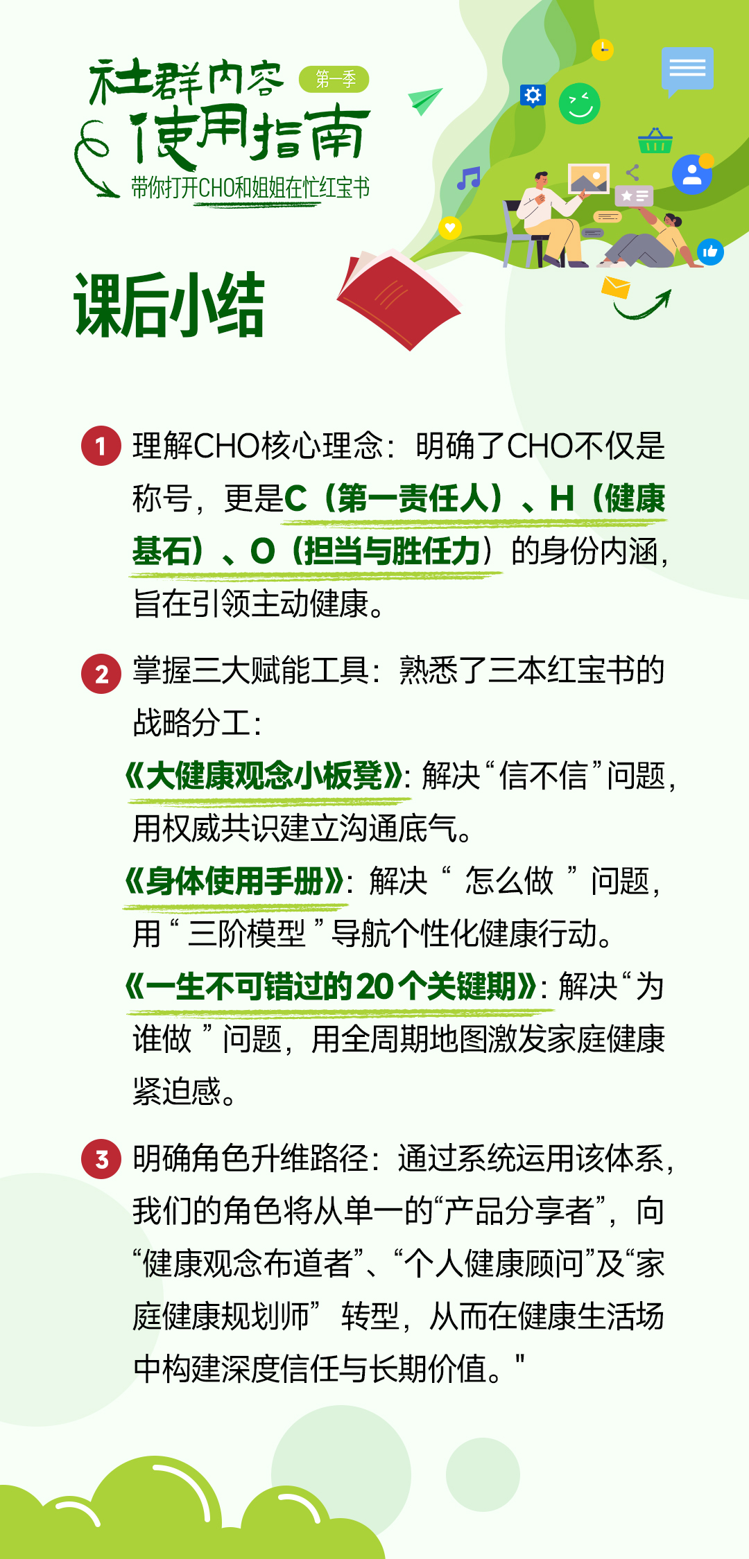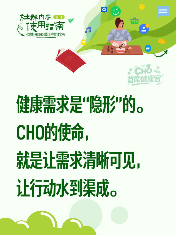在健康生活场中,揭晓「CHO 首席健康官」的三个内容产品,教你用其建立沟通底气、导航个人需求、规划全家健康,从产品分享者升级为家庭健康规划顾问。