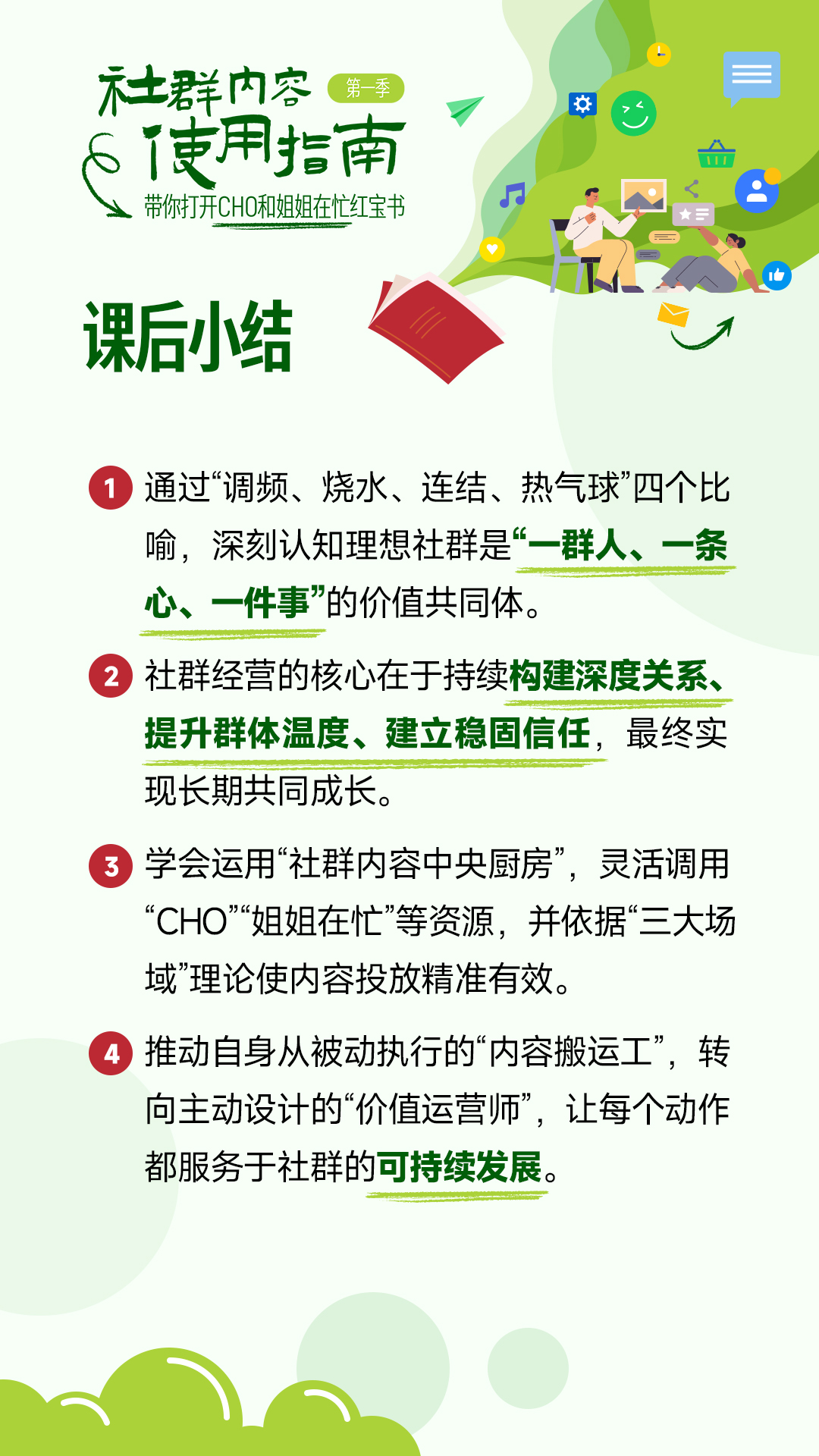 针对社群运营内容繁杂、发布无效果等问题,通过吃透 “一群人一条心一件事” 的社群本质。掌握「社群内容中央厨房」社群内容运营心法,解锁两大内容宝库,掌握三大场域理论的精准决策,实现从社群内容执行者到有价值的社群内容运营师的转变。