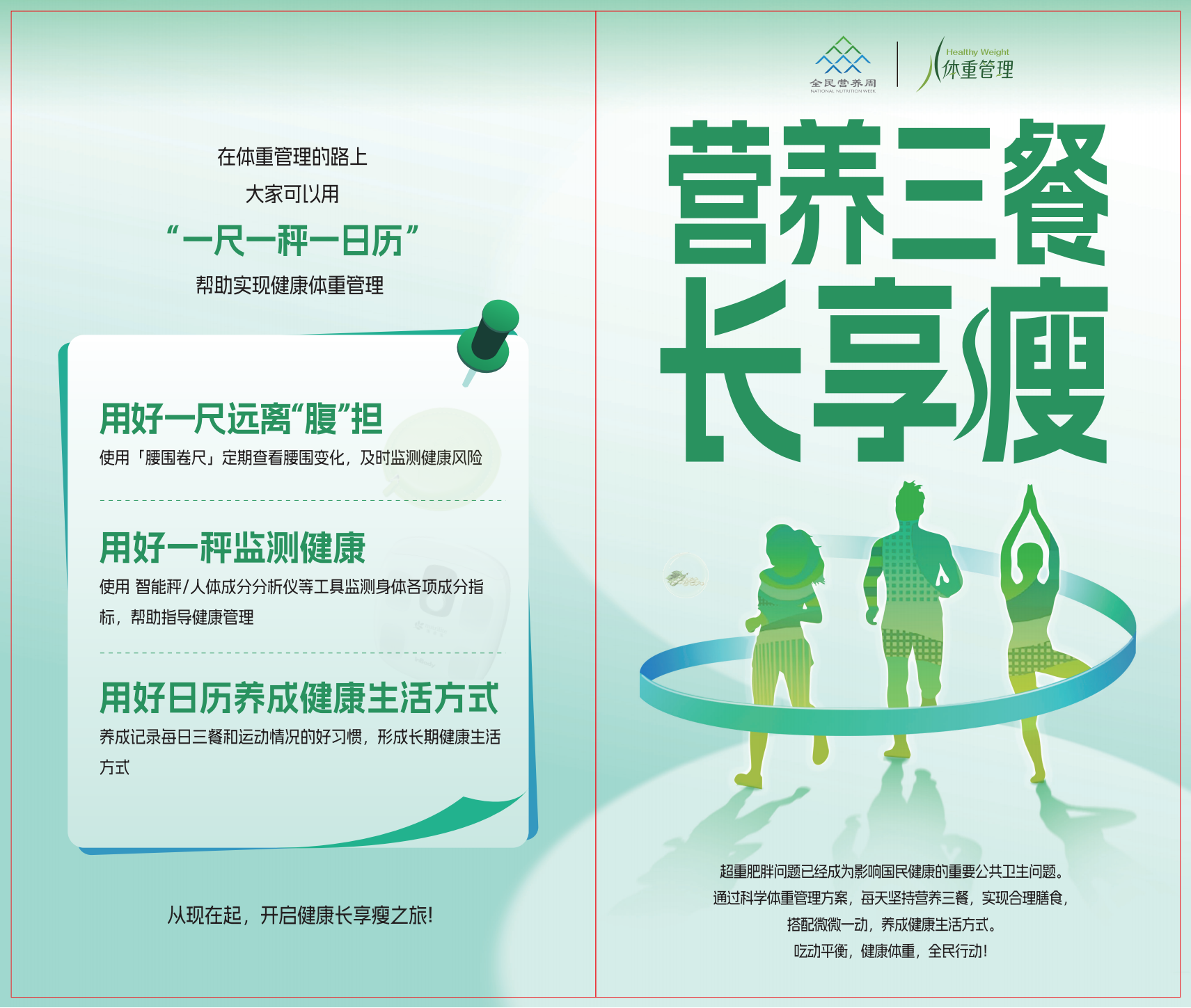 在体重管理的路上,大家可以用“一尺一秤一日历”,帮助实现健康体重管理。