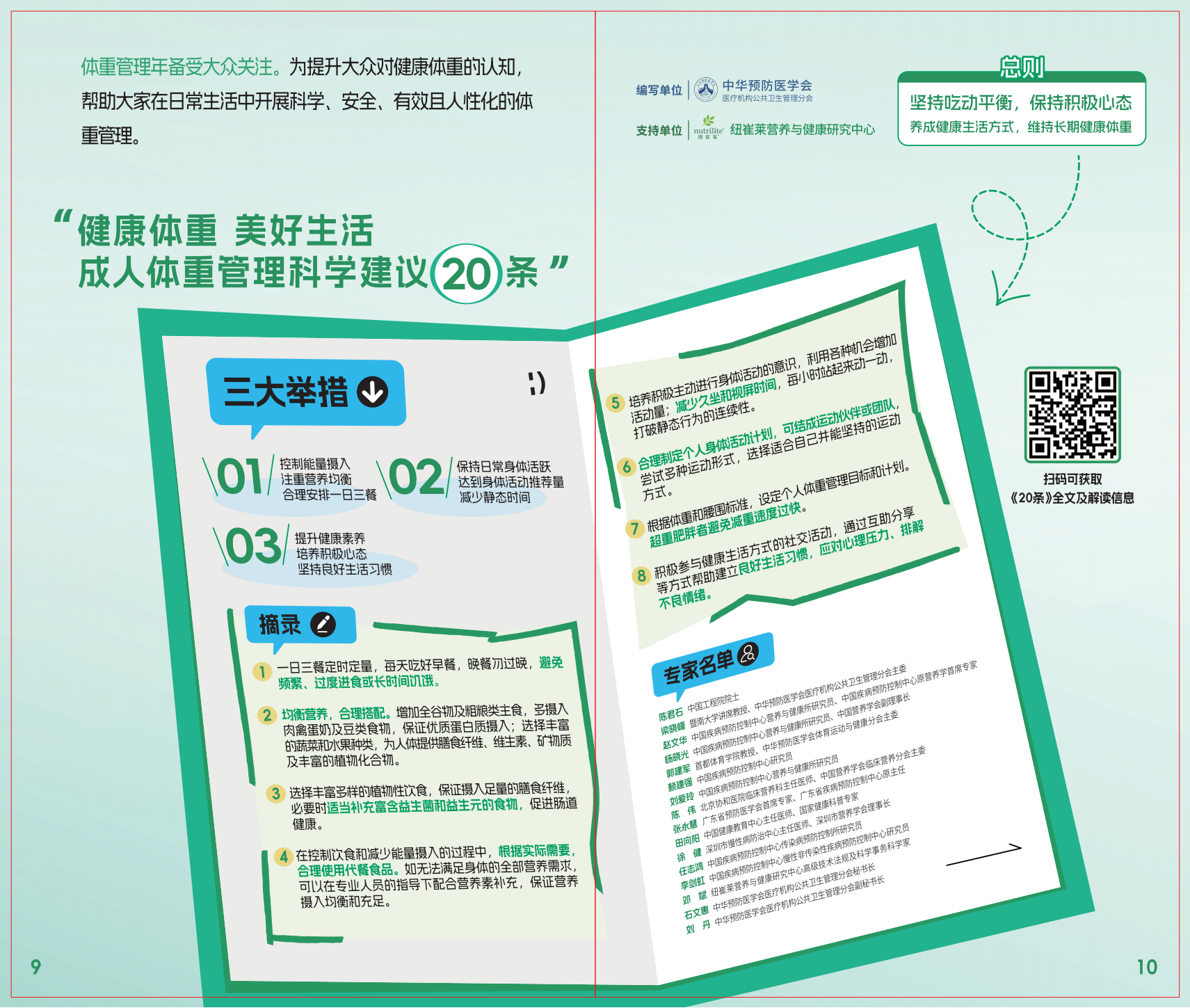 总则:坚持吃动平衡,保持积极心态,养成健康生活方式,维持长期健康体重