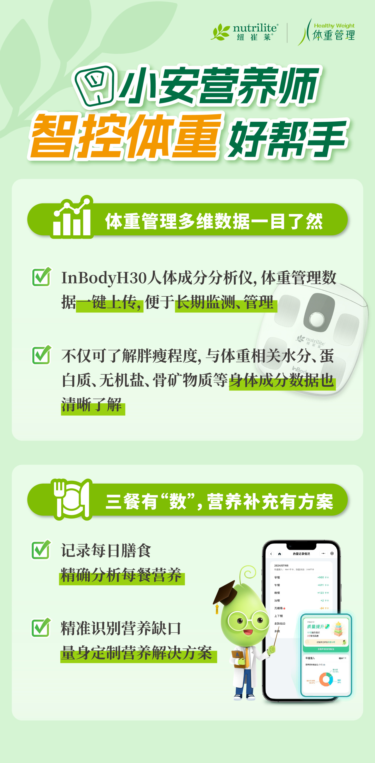 在高效"抗糖抗脂"的路上,黑科技营养素助你一臂之力。再搭配小安营养师的科学指导和InBodyH30数智化检测,精准分析身体状况数据。在这个夏天,一起营养三餐加倍燃,高效智慧控体重!