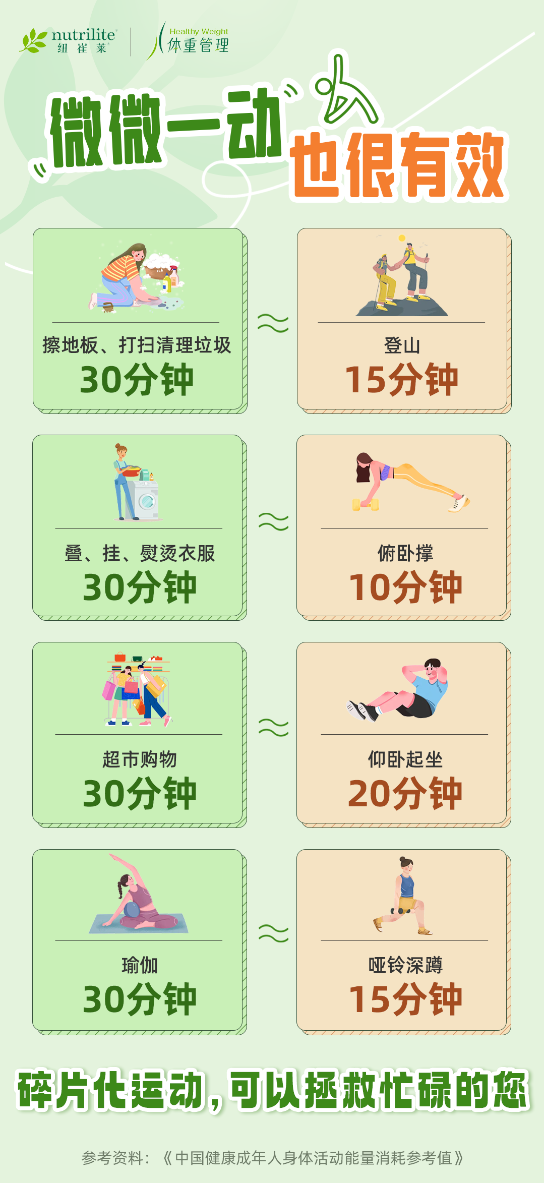 看到这里,是不是对体重管理又重燃信心了呢?趁着全民健身日的到来,赶紧行动起来吧!吃好营养三餐,微微一动,养成健康生活习惯,收获健康体重。