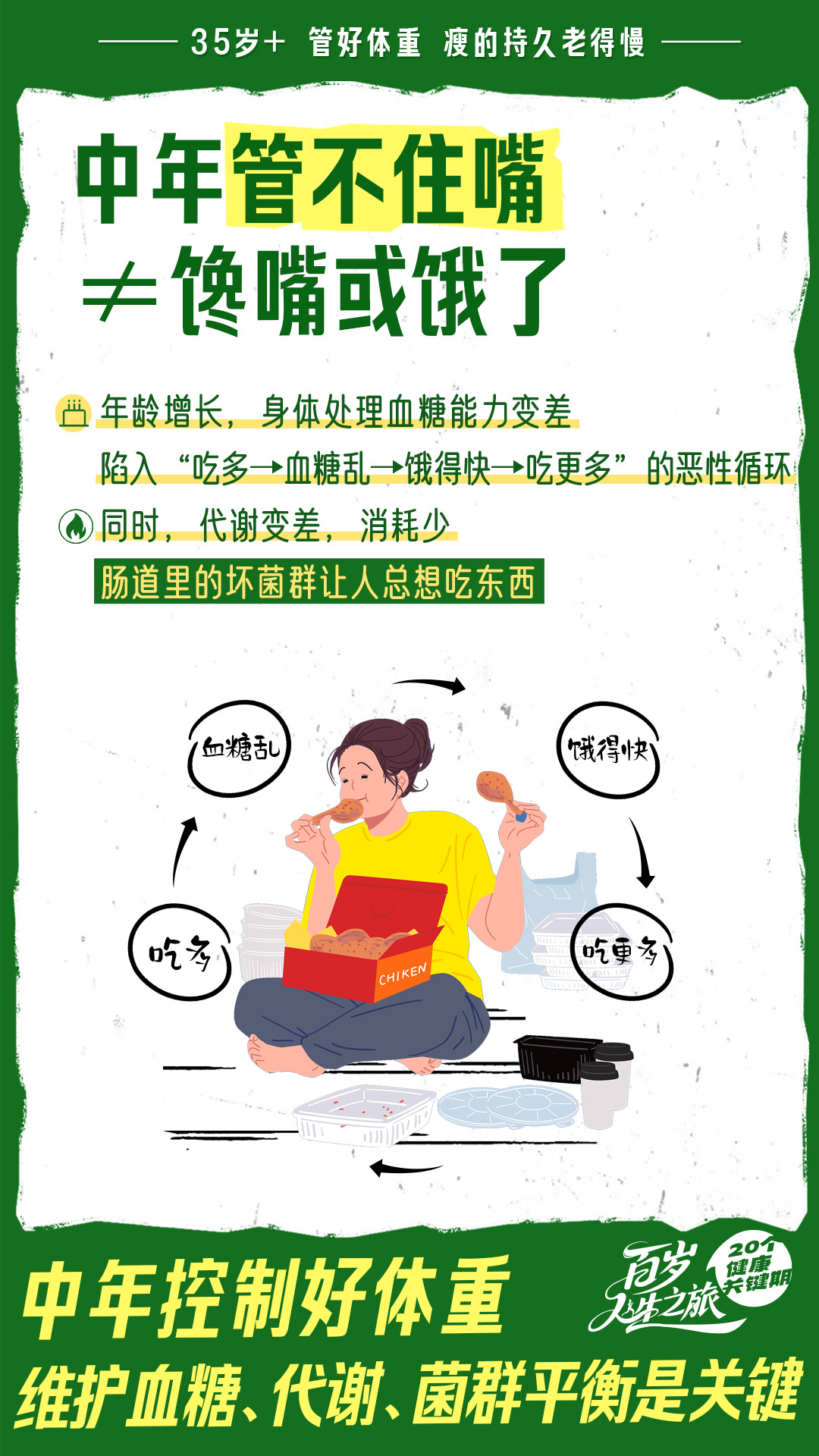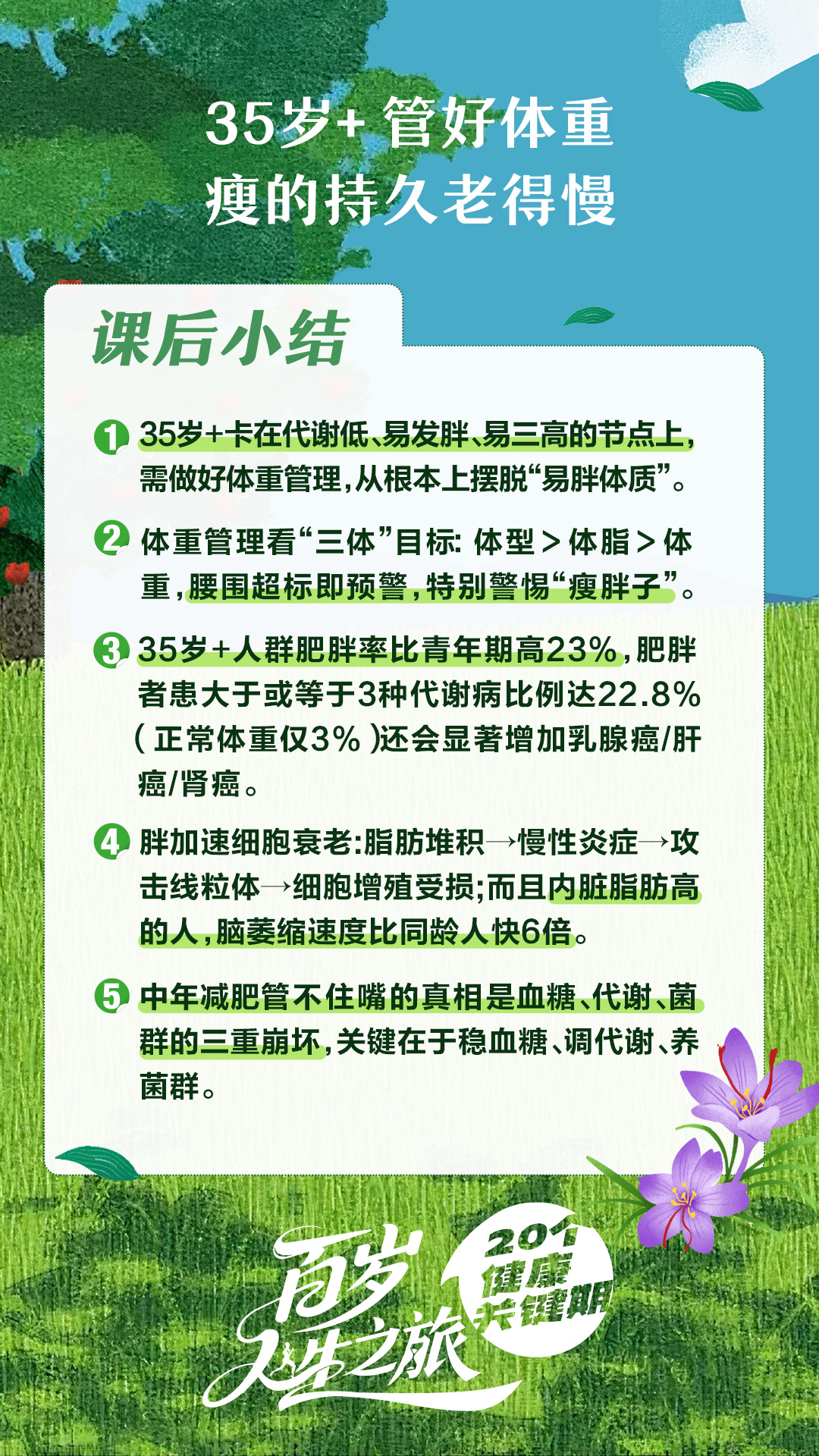 1 35岁+卡在代谢低、易发胖、易三高的节点上,需做好体重管理,从根本上摆脱“易胖体质”。