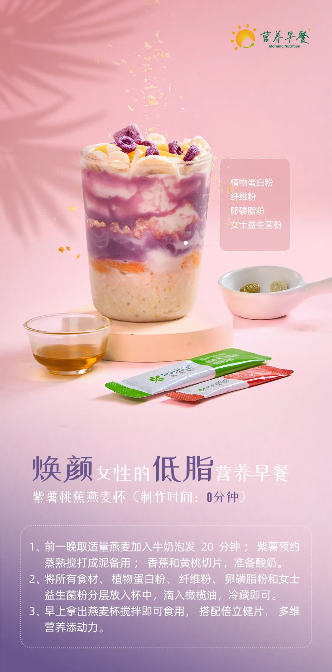 先吃早饭啦,今日份的营养早餐是紫薯桃蕉燕麦杯。细心的家人肯定发现了,我的每一次早餐中都有益生菌。这就是我今天要告诉大家的减脂小外挂哦!