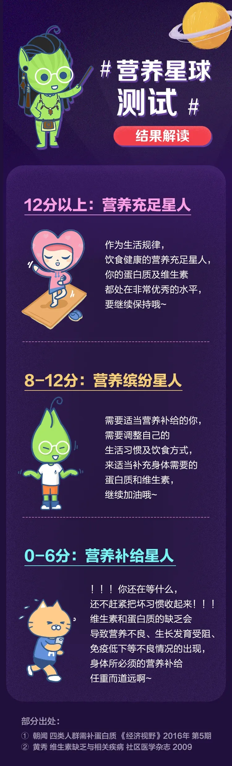 导语:来咯!大家都算完分数了吗?一起对照看看结果吧~你是营养充足星人、营养缤纷星人,还是营养补给星人呢?说说呗~