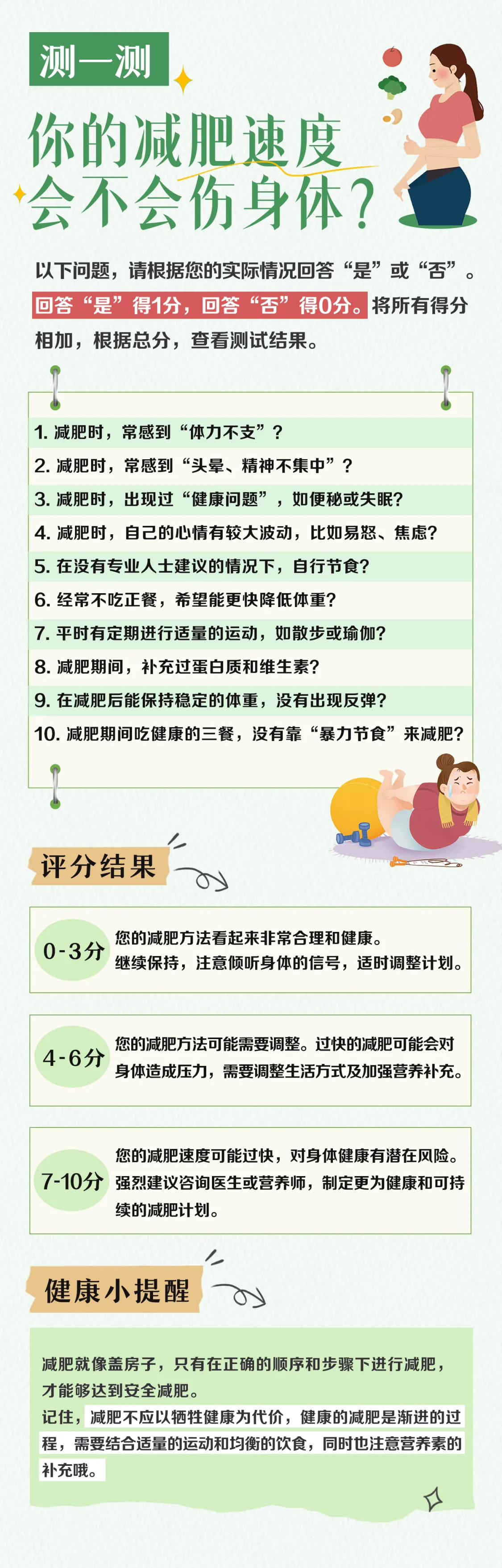 有没有人看过《热辣滚烫》?是不是觉得贾玲一年减肥100斤好励志啊!先别忙,我们普通人减肥,减肥速度可是有要求的。掉秤慢了,心里着急;掉秤太快,很可能身体要出问题。做个简单的测试,看看你的减重速度会不会伤身体。
