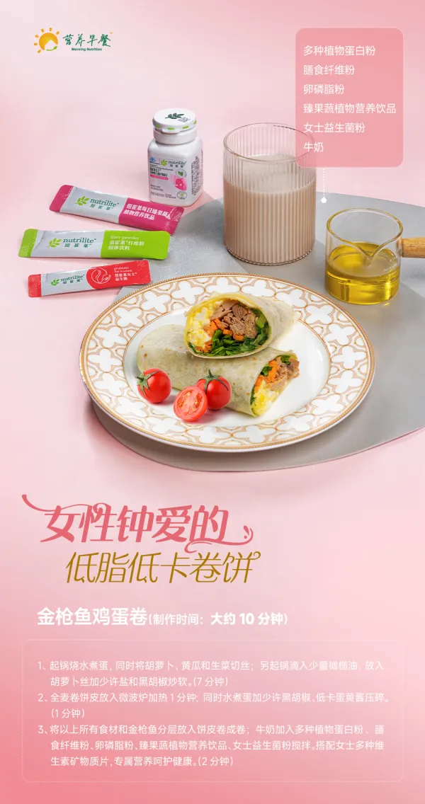 我已经吃上咯,今天是快手又美味的低脂低卡金枪鱼鸡蛋卷饼,还有一杯植物营养饮品,真的超级好吃。你们的早饭吃什么呢?快来晒一晒吧。