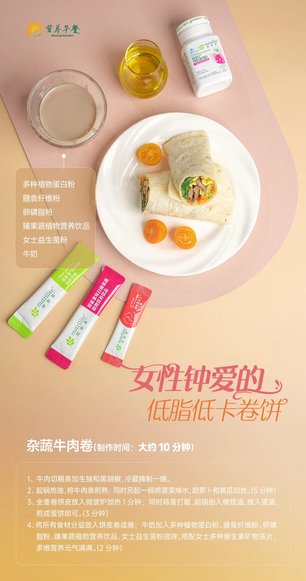 今天是第10天不重样的营养早餐哦~依然是低脂肪低卡路里的美味卷饼,不过今天我们换了杂蔬牛肉卷,也是10分钟就能搞定的营养快手早餐。