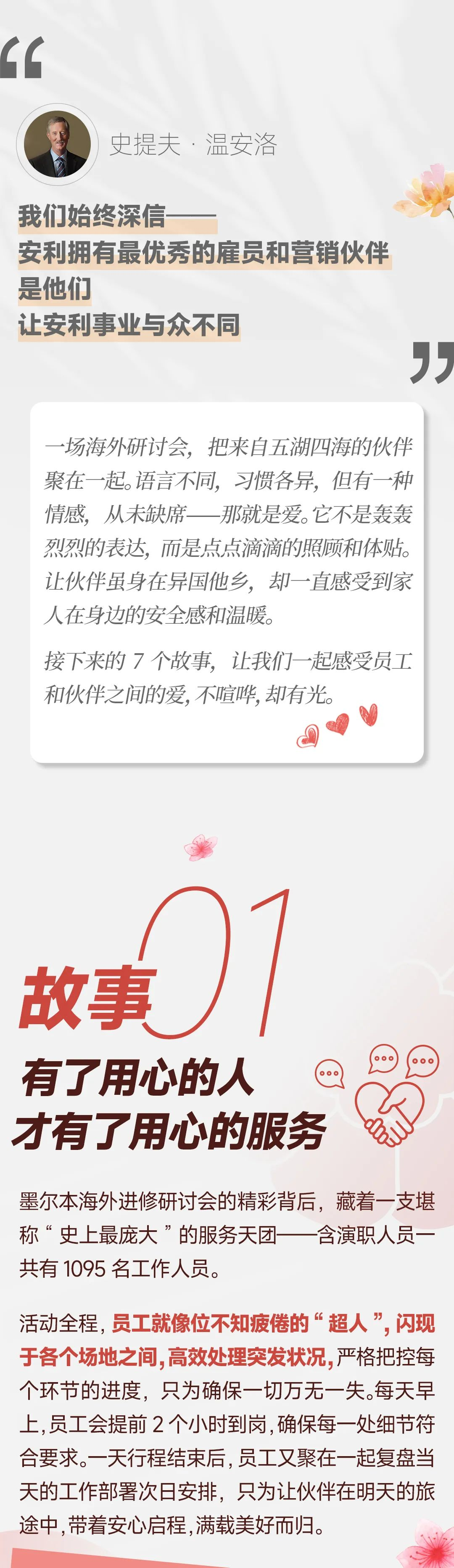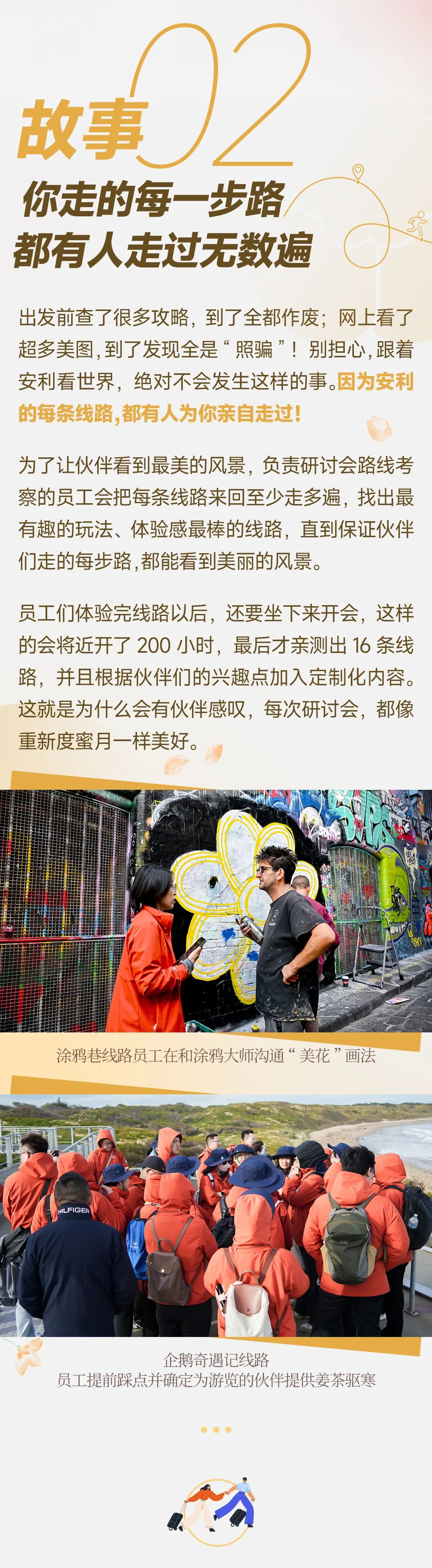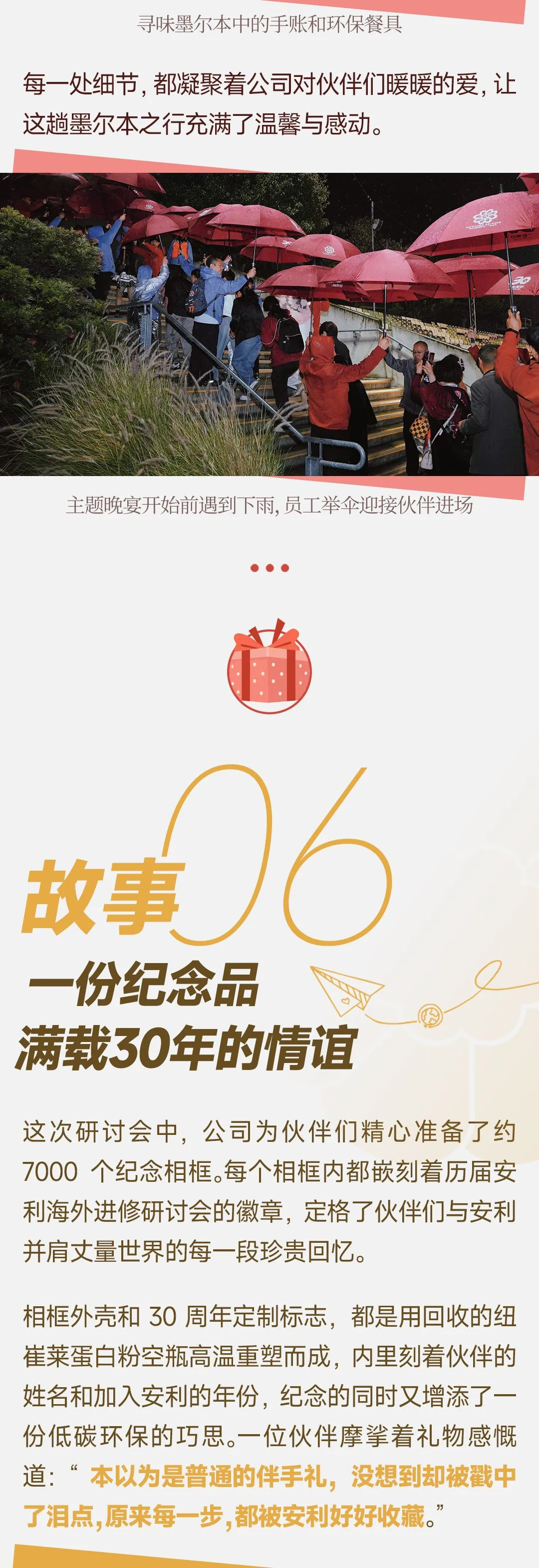 我们都知道公司的海外研讨会是天花板级别的,那30周年的这次出行又会怎样刷新我的认知,带来哪些未知的体验呢?常规的打卡,繁琐的攻略,我们早就被公司宠坏了,顶级的体验,新奇的感受,还必须躺赢哇,里面是四枚徽章哎,还有墨尔本的天际线,就是这样一张普通的地图,在公司的巧妙设计之下,变成了17条宝藏线路,每个人呢,都能按照自己的兴趣组队打野。这次的出行又增加了几个我人生中的第一次。28天。每天早上,只要天气允许,这个印着安利中国30年logo的热气球都会带着我们翱翔天际。飞机在天空中画出了A30,站在墨尔本的各个街角,只要抬头就能看到它。第一次亲历这样的生日告白,你是不是也被浪漫到了?站在这里,第一次被沉浸展给震撼到,光影之间,我走进了他的精神世界。突然,我懂梵高了。这么大,比我的脸还大,高端的食材,只需要最简单的烹饪方式,龙虾。第一次吃到了最最最新鲜的海鲜。从捕捞到入口只用了短短的几分钟,海的味道是鲜甜的,一口就嗨到了顶点。这个海里现捞的,现捕的,然后现做的,这是头一次体验,太惊喜了,跟着安利看世界,每次都会体验到各种人生的第一次,不断拓展我们的视野,刷新我们的认知,这里太美了。关于这次的提案,听听伙伴怎么说,第一次参加我必须要来,公司的待遇就是高端贵宾就把你服务的,真的是让你找不到北的那种感觉,好,请上车哦,扫个码,公司后台的大数据就能收到我们的信息,有没有安全上车,饮食呢?是不是重复了?员工会根据数据变化实时调整方案,关照到17条线路上的每一位伙伴,以前出去玩过,哪有这种心思啊,不管是吃的住的玩的,什么都是一流的,这么贴心的服务让我们每天都乐不思蜀,这份尊重也让我每一刻都能感受到大写的人,当我们挂在小火车上冲进绿野仙踪的瞬间,所有人秒回童年。在这里我遇到了一对宝藏夫妻,我们95年加入安利,然后我们也是95年结婚的,今年也是我们结婚30周年。哇,羡慕羡慕,我们也要向你们学习,一起来呀,一起来一起来。哇,这也太甜蜜了吧,每次研讨会,各种幸福家庭的场景比比皆是,一起出游是我们跟家人更亲密的最好时机,大家对这个世界充满了好奇,童心依旧,考拉也配合我们的心情睁开惺忪睡眼。在这里,家庭和事业不是单选题,而是融为一体,成为彼此的加分项。只有跟珍视家庭的企业同行,才能看到这样幸福的时刻吧。16年老姐妹在巴厘岛相聚,事隔九年,我们又来到塔斯马尼亚,又相会,我是无比的热爱安利,因为我要保持住我的容颜,这一辈子干到老。安一代,二代三代,安三代都一起在做。为什么安利人能够做到30年,让美好不断延续,一切为了伙伴成功已经写在了安利的基因里面,我相信未来30年的美好一定会远远超过今天我们所有人的想象。在这里我要诚挚的邀请各位美好生活创业家与公司一起迈向那个令人无比兴奋,无比向往的美好未来。去哪里不重要,和谁在一起才重要。志同道合的我们将继续坚守助人自助的初心,带领更多伙伴一起美好。