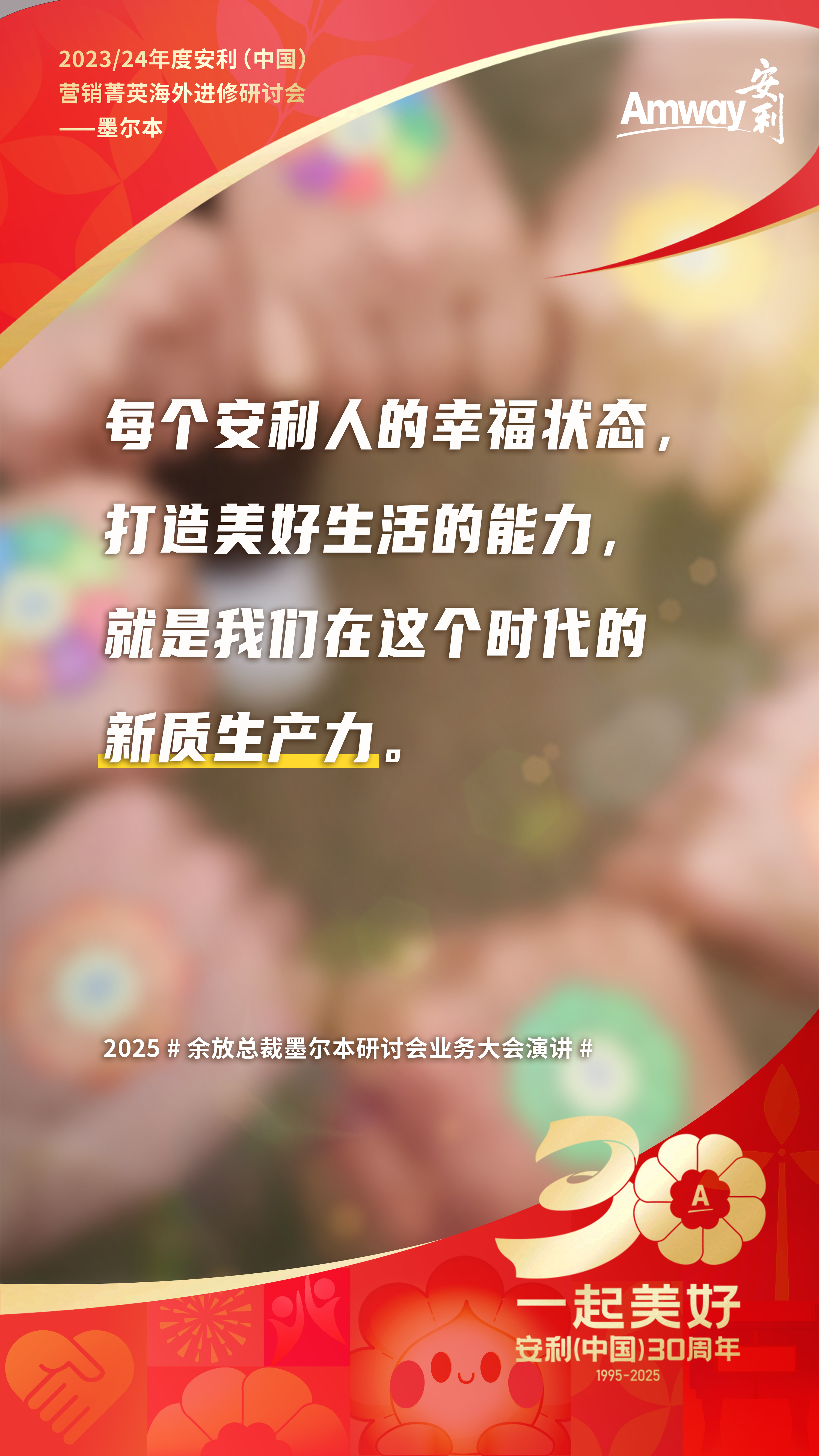 每个安利人的幸福状态,打造美好生活的能力,就是我们在这个时代的新质生产力。