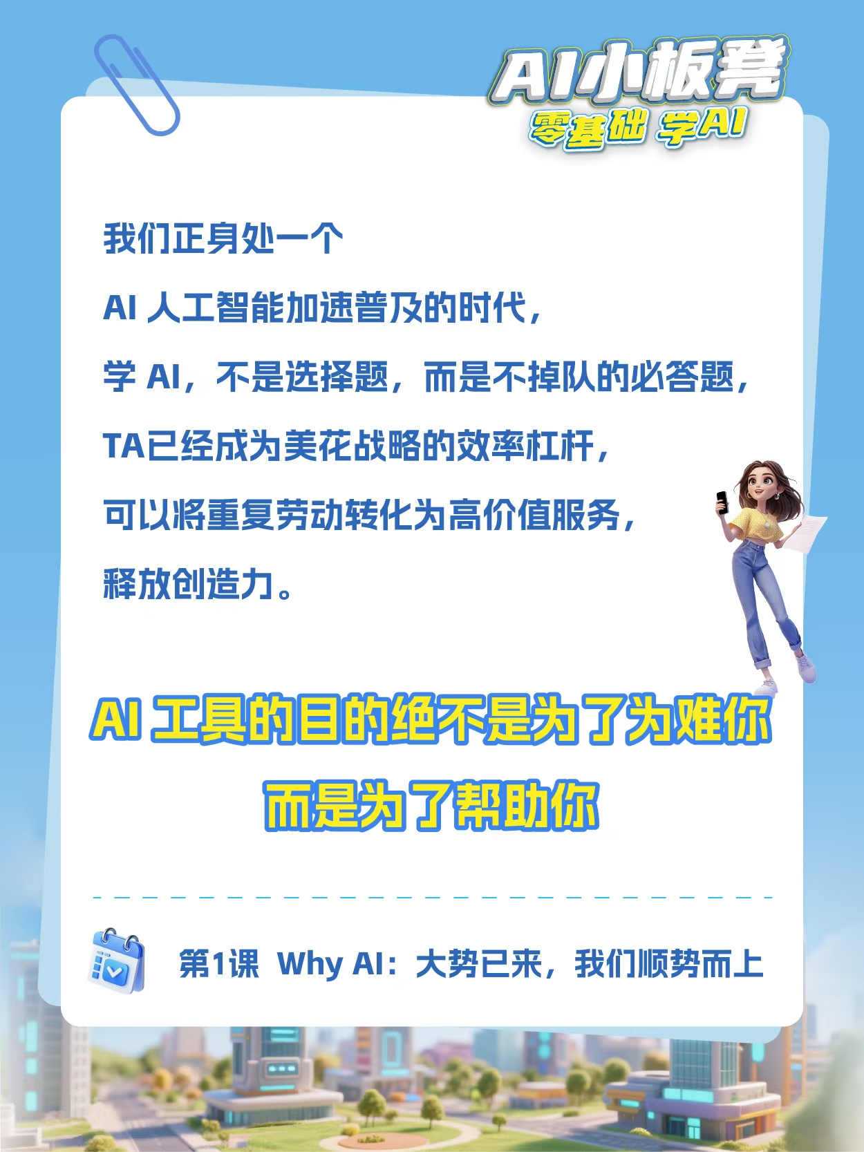 错!不用敲代码、不用死记硬背、 还有“AI小抄”模板!来AI小板凳线上培训课,认识它,学习它,用好它,把它变成你的“金牌助理”。