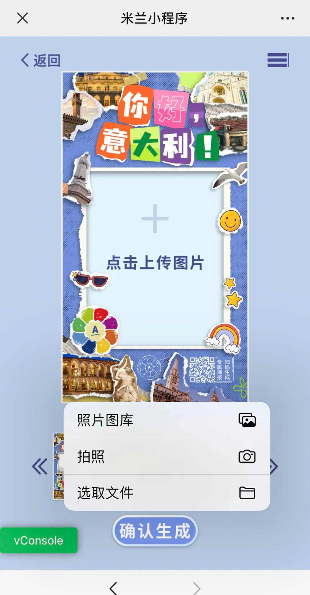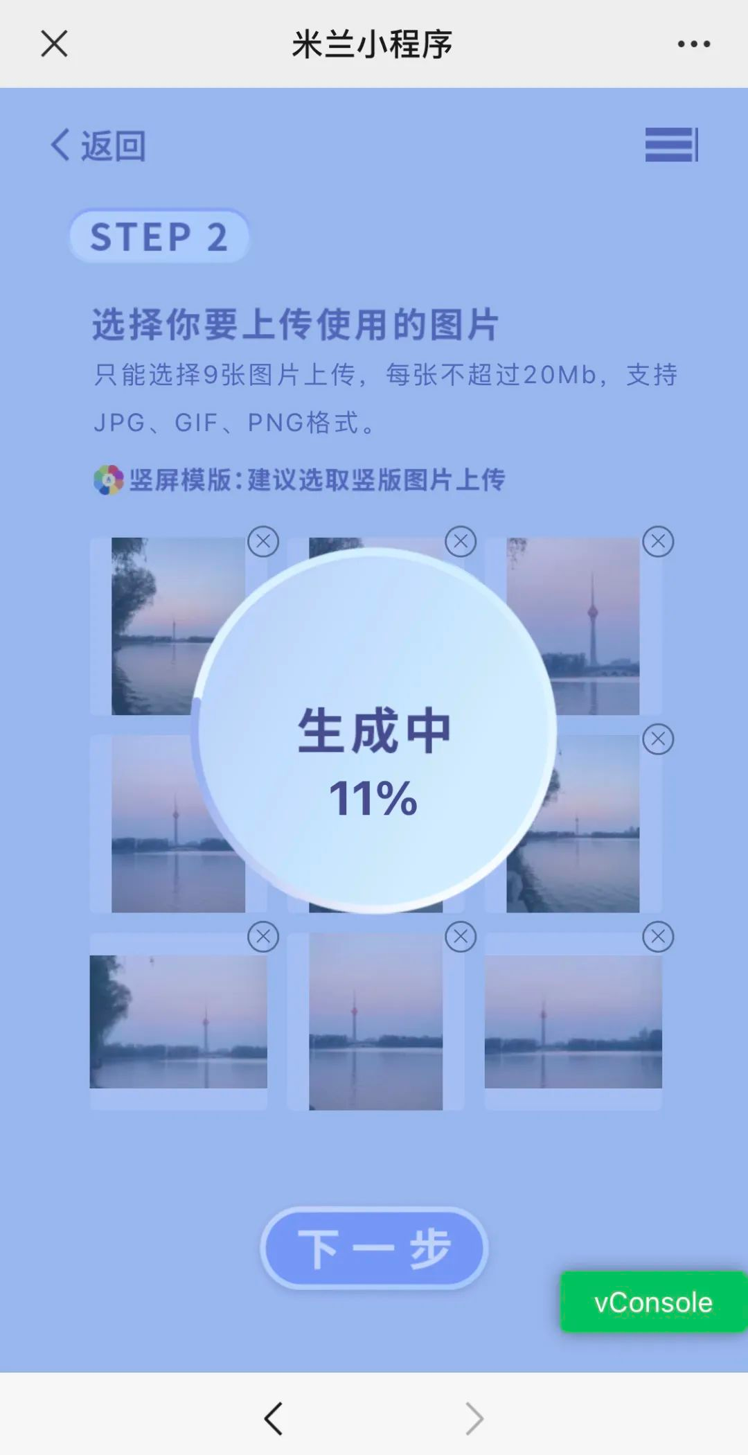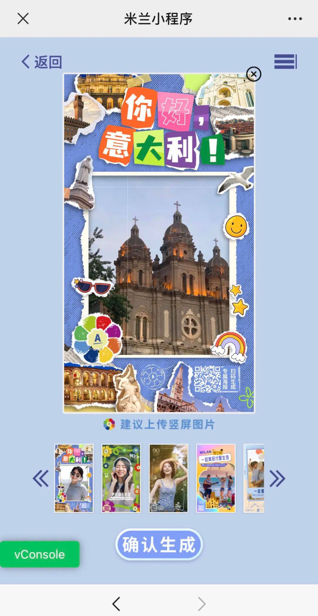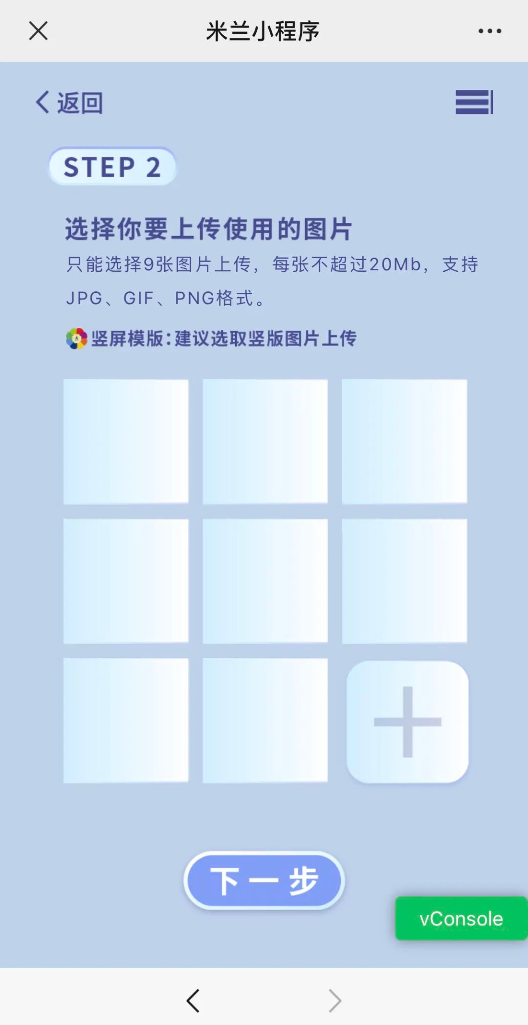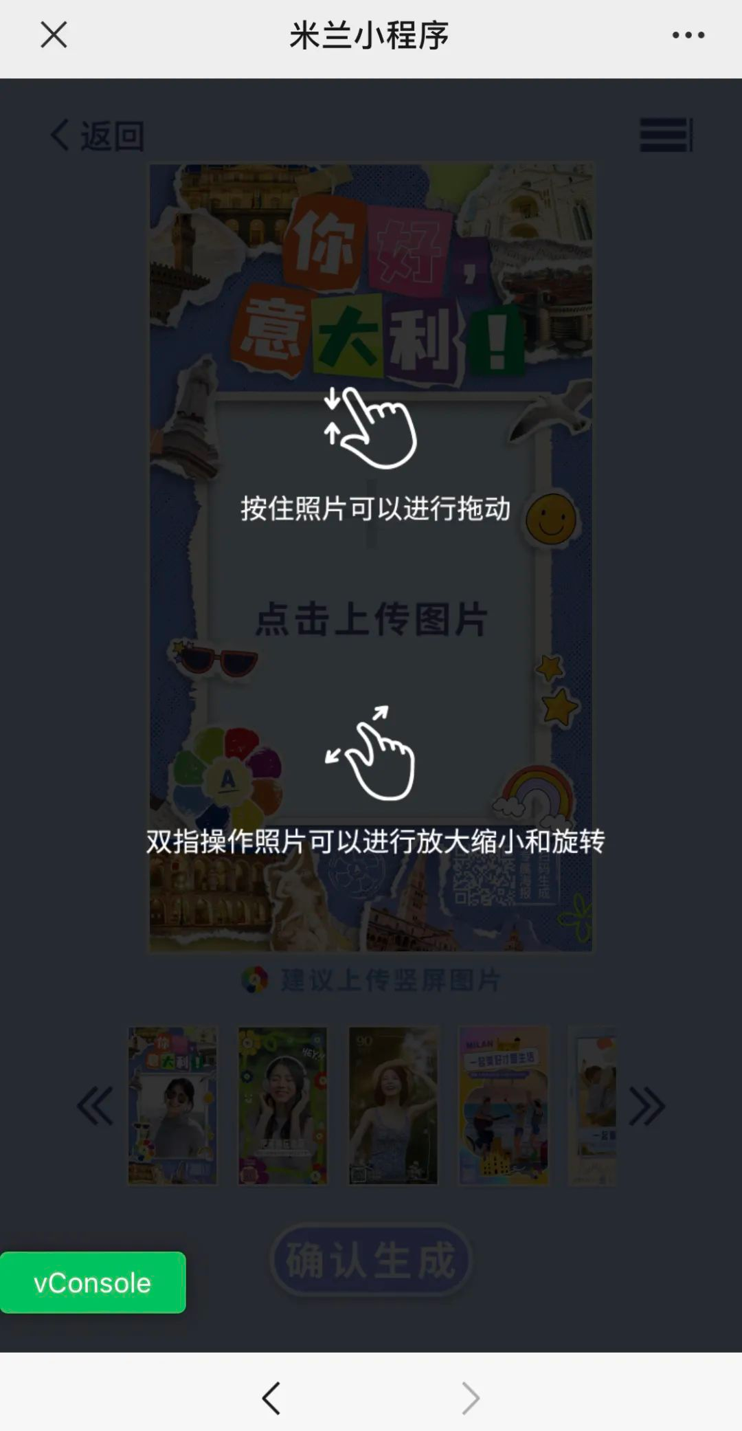 小贴士:本次米兰图文平台关闭了【一键拼图】等功能,欢迎大家探索米兰小程序新的功能。