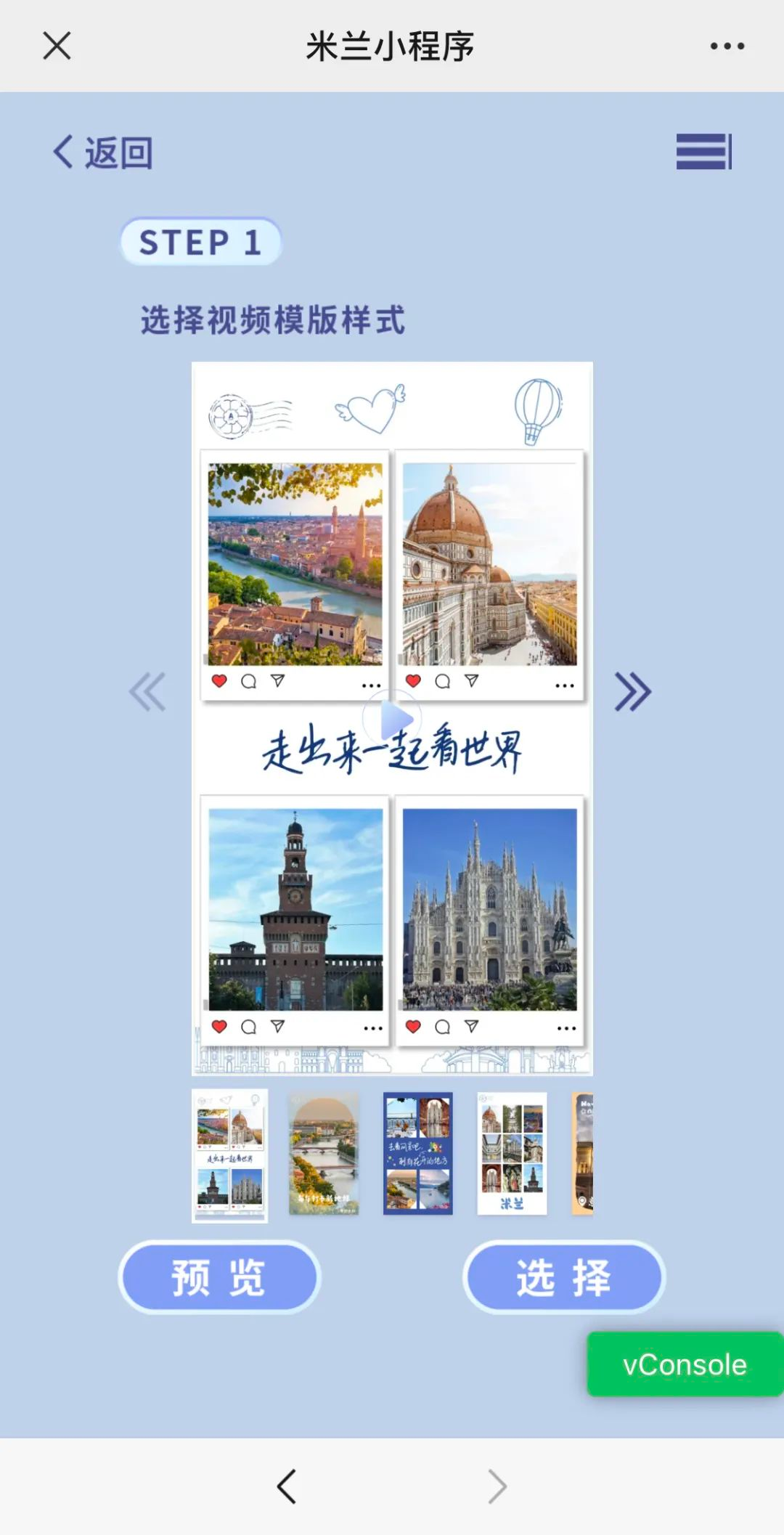 共6个视频模板,根据喜好选择心仪模板,点击“+”上传9张图片;