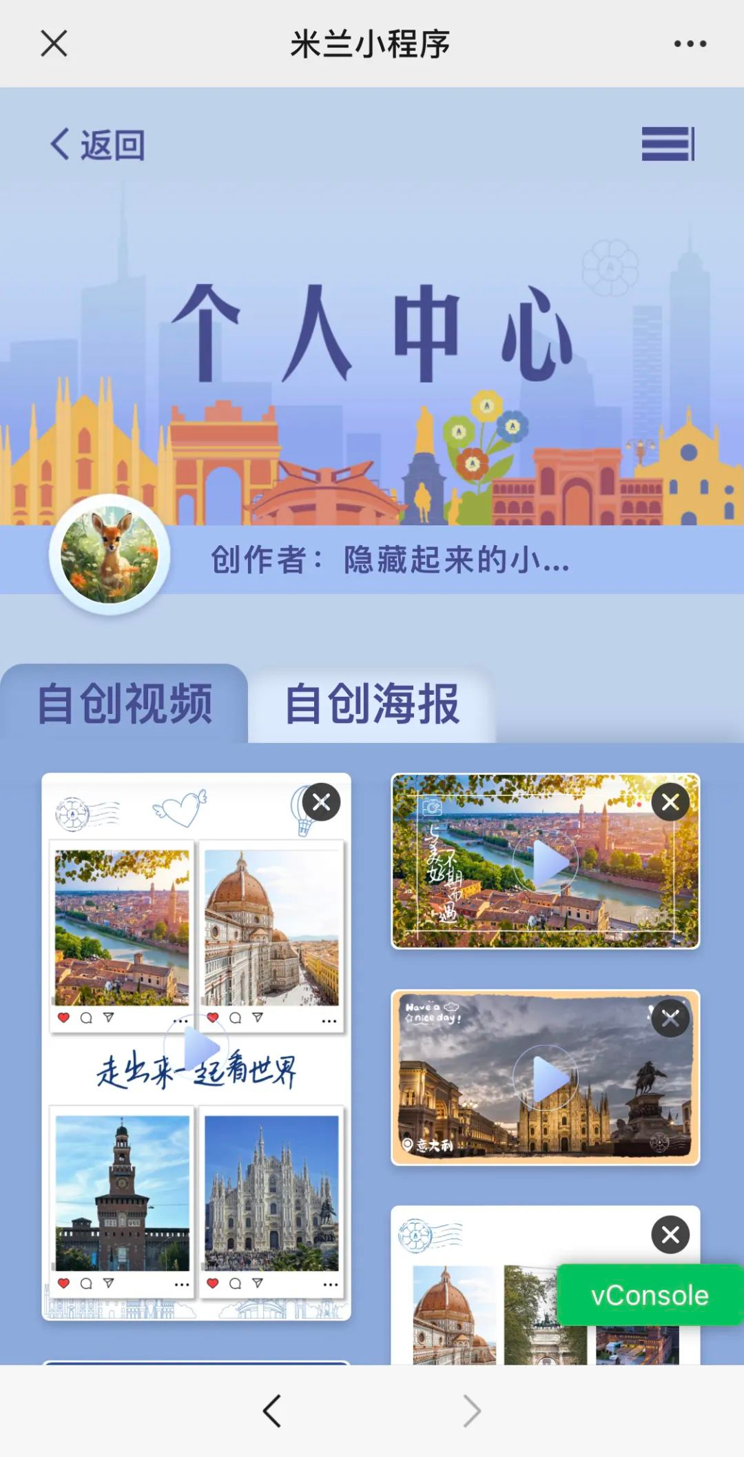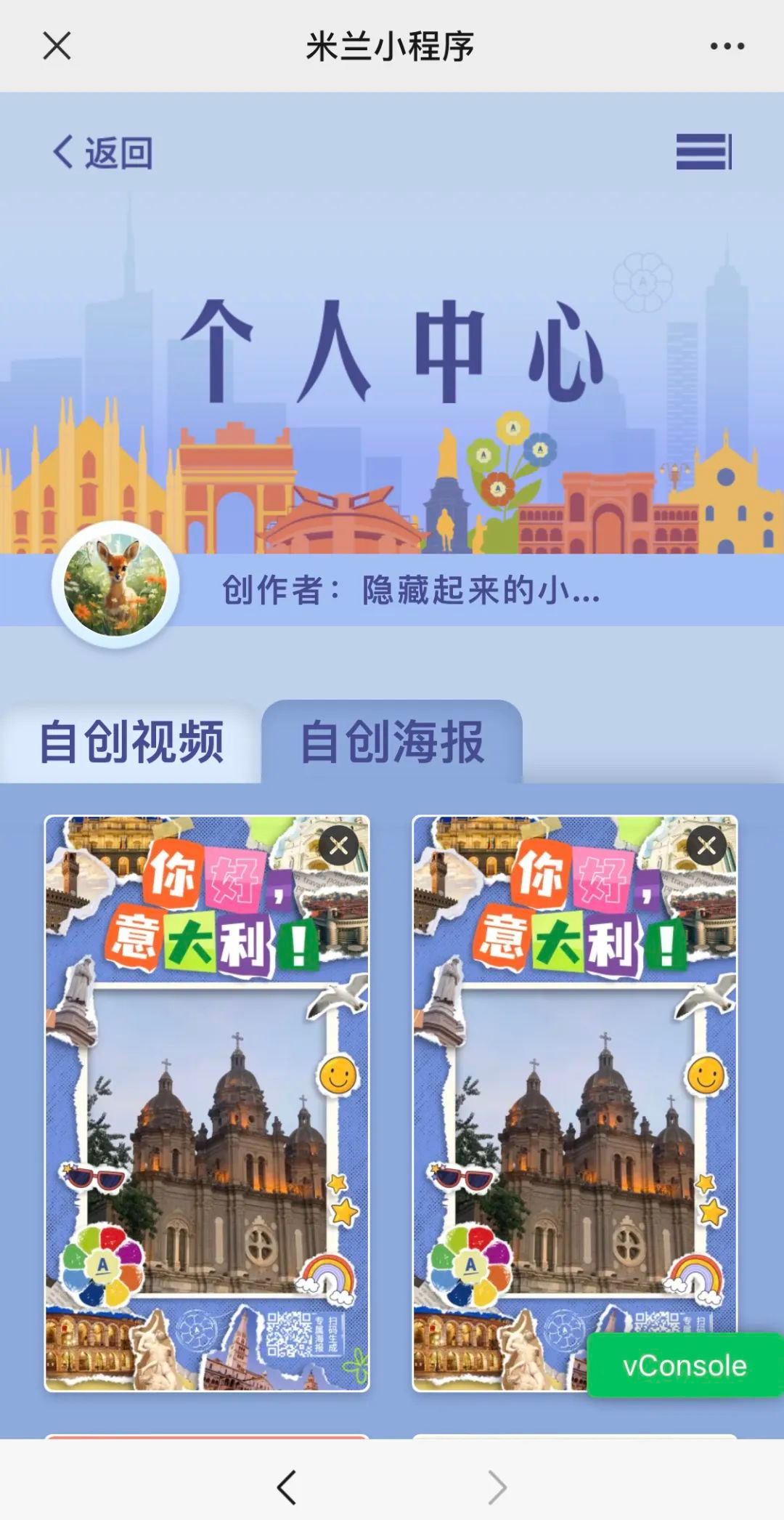 在个人中心,找到曾经制作过的视频和海报,还可以将往期作品分享给亲朋好友。