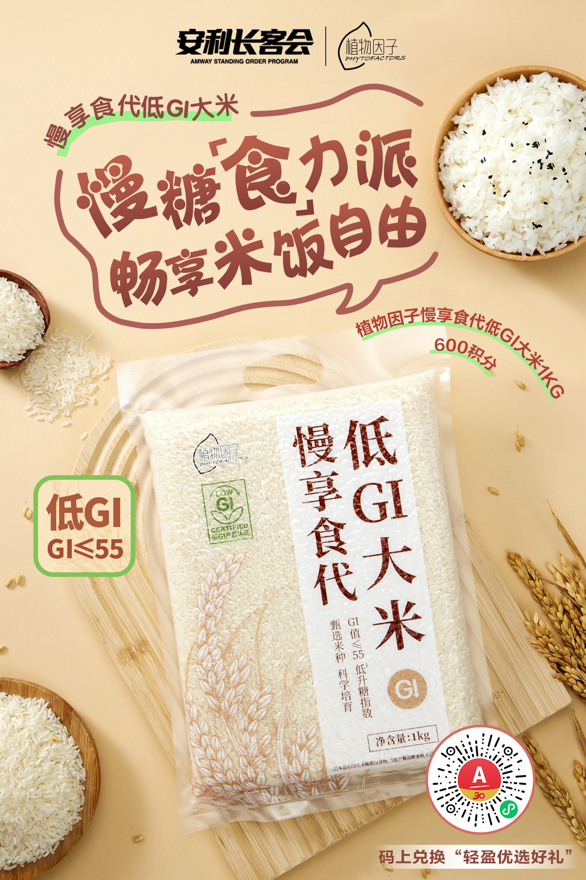1️⃣植物因子慢享食代低GI大米(1kg)🛍600积分