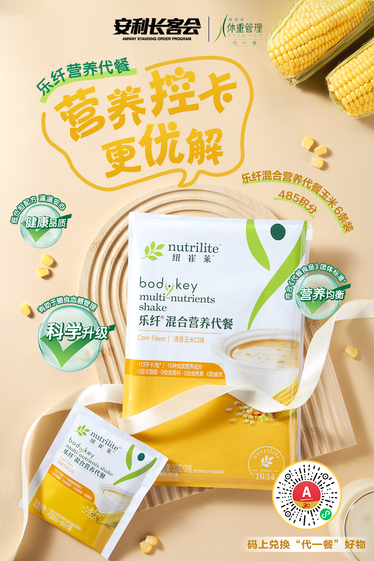 🥣乐纤混合营养代餐玉米(6条装),科学营养助力吃动平衡