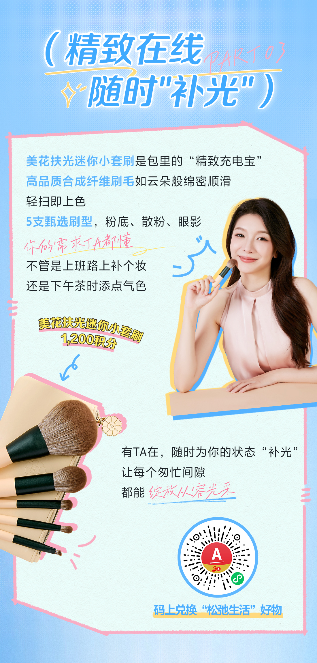 美花扶光迷你小套刷是包里的“精致充电宝”