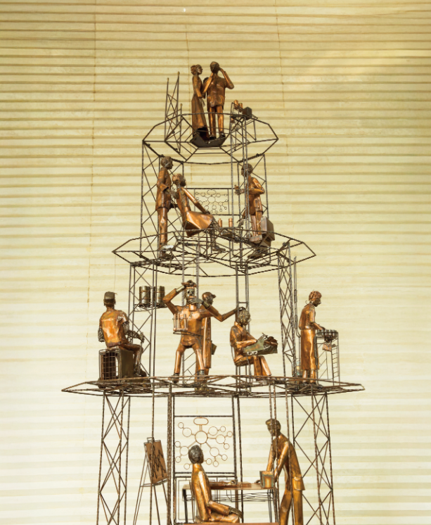“共筑安利”铜雕作品创作于1973年,高约5米,自下而上分别象征着创办人家族、员工、营销伙伴和顾客,寓意着安利永远将伙伴和顾客放在第一位。2009年安利全球50周年之际,这个作品从美国总部漂洋过海来到中国,现珍藏于位于广州生产基地的安利(中国)展览馆。