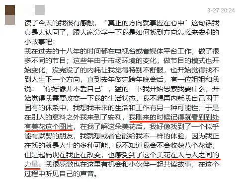 “聚是一团火,散是满天星。我要继续做一个眼里有光、心怀美好、看见他人、成就他人的人。”