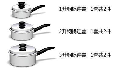 1升钢锅连盖、2升钢锅连盖、3升钢锅连盖:可烹调各种菜肴与米食,大、中、小三种容量,提供多样化选择。