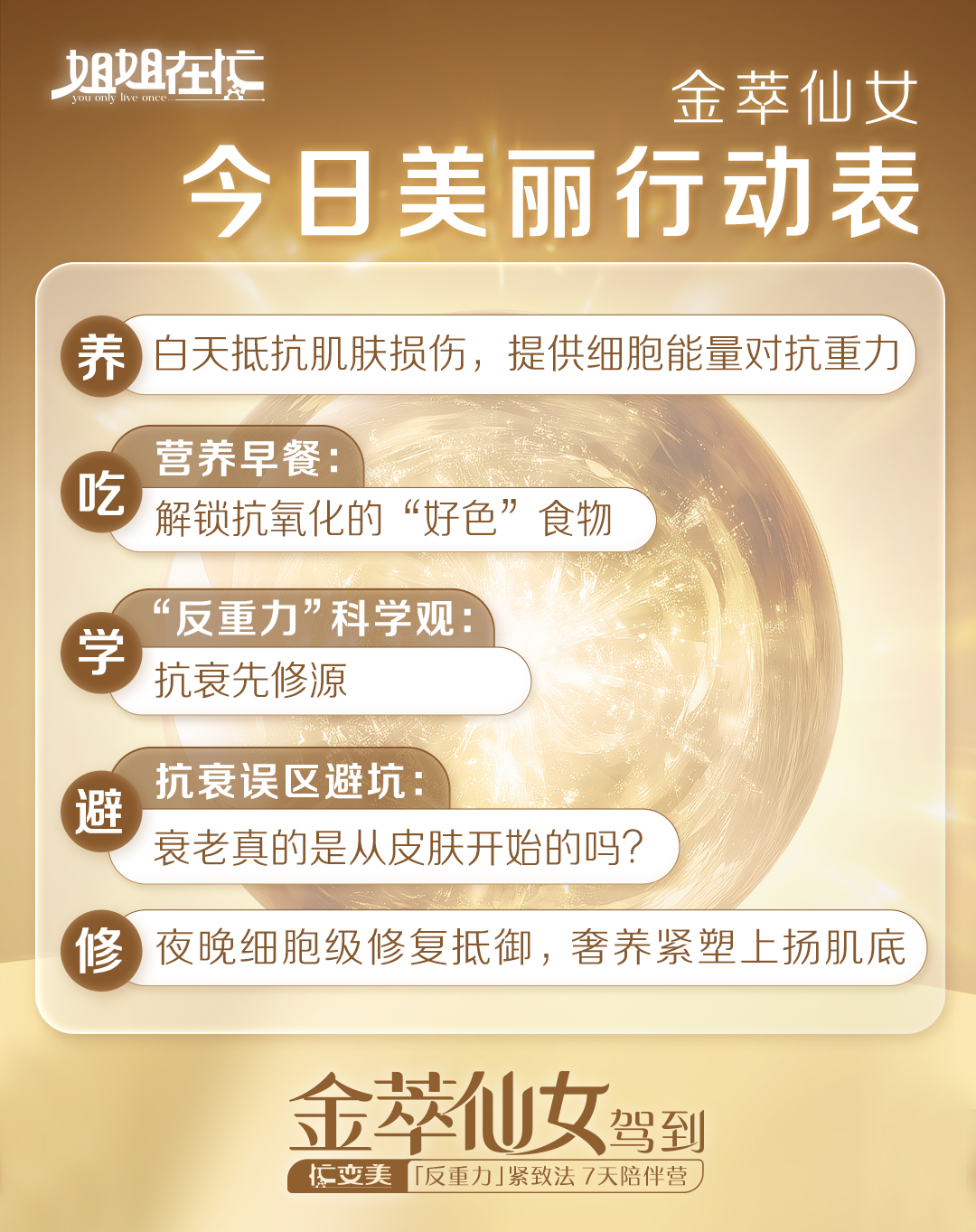 养:白天抵抗肌肤损伤,提供细胞能量对抗重力