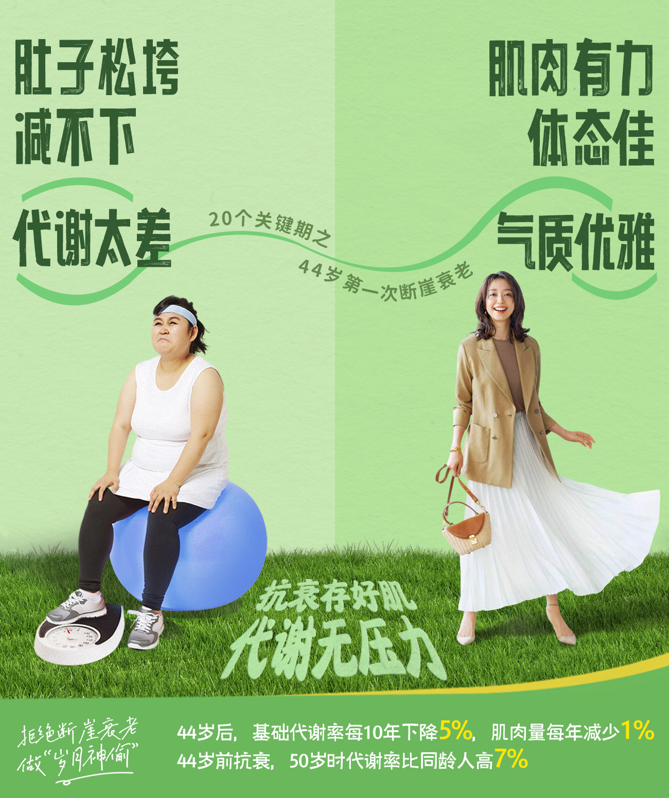 44岁后,基础代谢率每10年下降5%,肌肉量每年减少1%