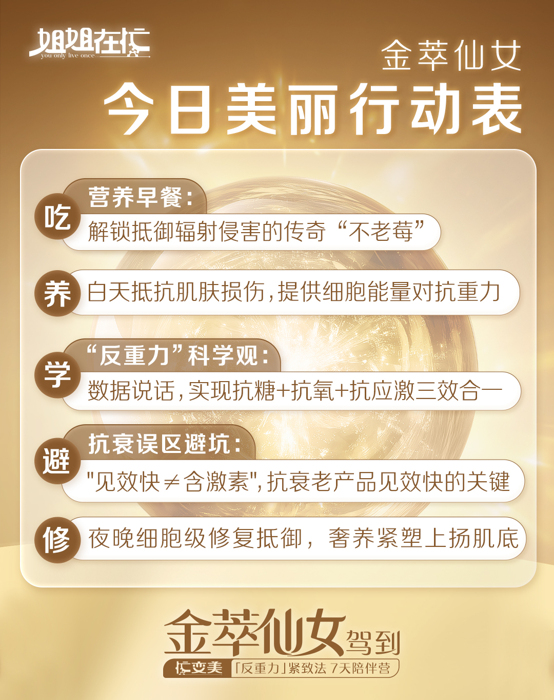 白天抵抗肌肤损伤,提供细胞能量对抗重力