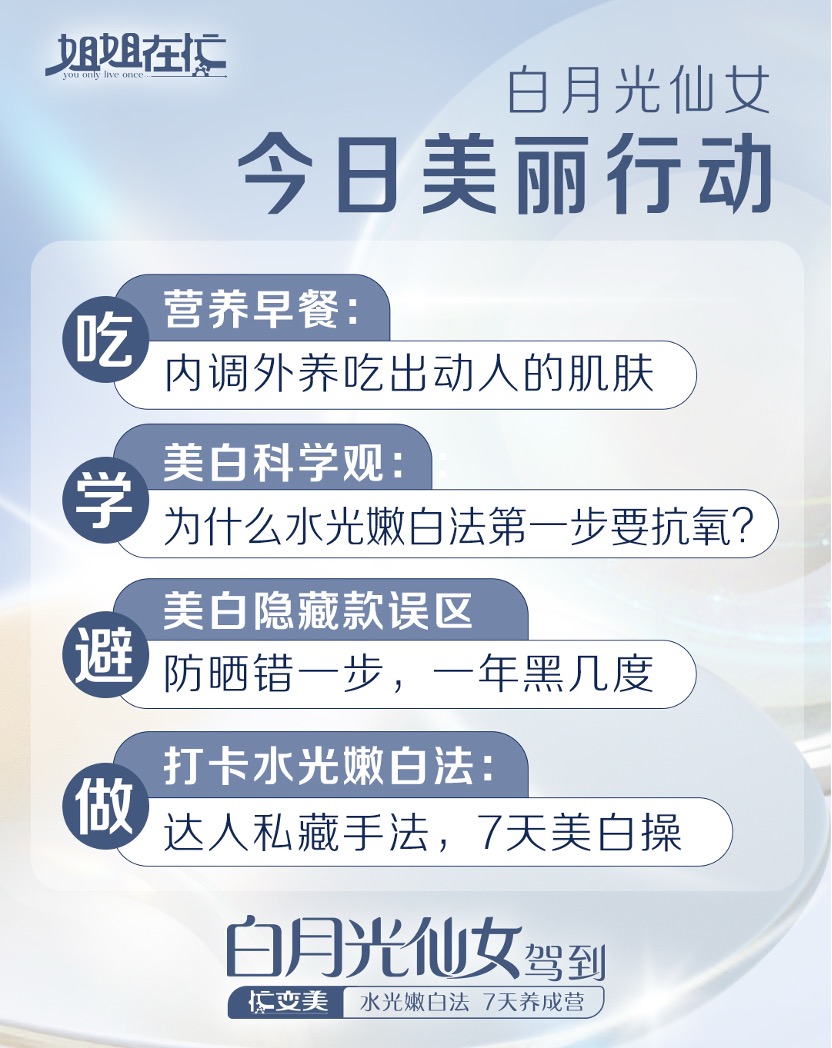 早上好,欢迎各位白月光仙女驾到~今天水光嫩白法7天养成营正式开启。