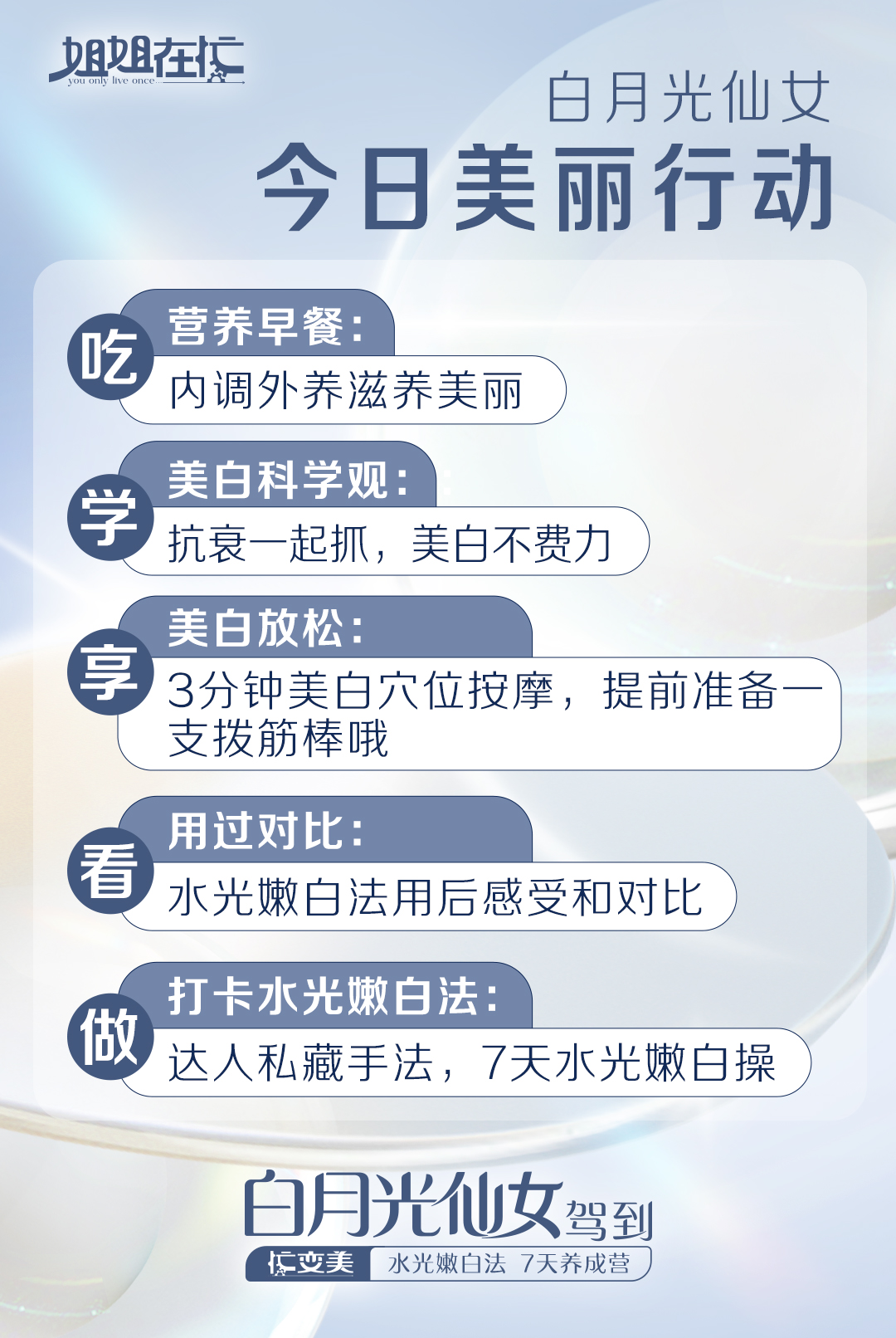 今天是水光嫩白法养成的第5天啦,今天我们来做一个选择,左手是美白、右手是抗衰,你选哪个,能不能两手我都要?今天我们来打开美白新思路~来看今日美丽行动