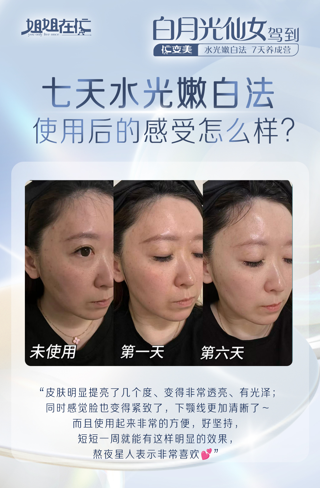 姐妹们,到了“水光嫩白法“打卡护理时间了,连着做了5天了,你觉得皮肤有什么变化?每个人的状态、肤质不同,感受也会各有不同~