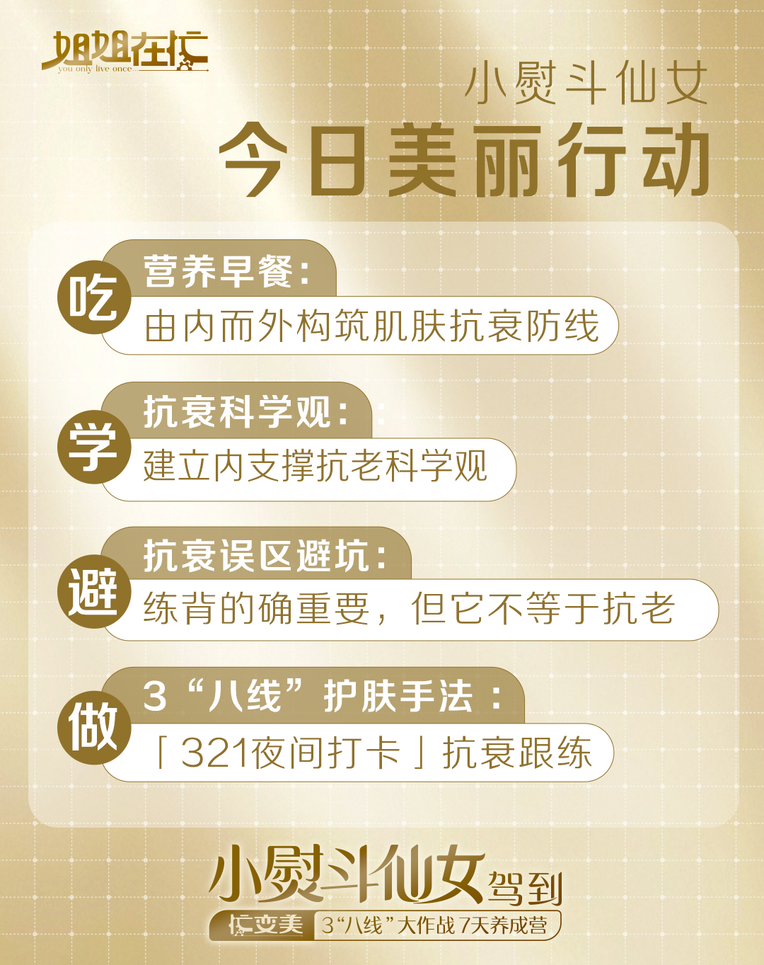 所以姐妹们,我们的每一步护理、每一次跟练打卡,都是在给皮肤“装支架”。千万不要等皱纹越来越深,脸越来越垮,才开始各种补救。