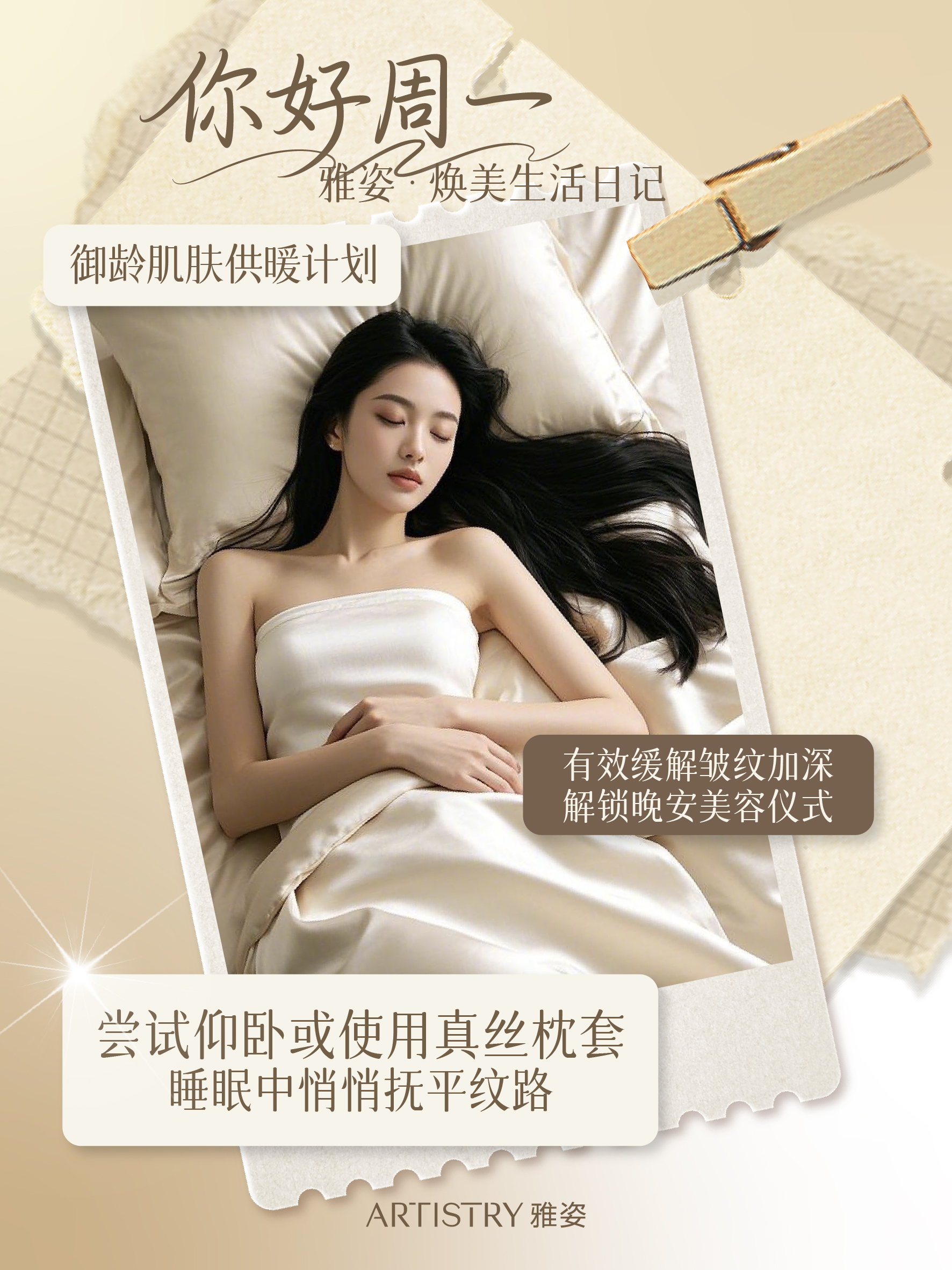 睡前仪式不能少,尝试仰卧+真丝枕套,减少摩擦压痕,睡眠中悄悄抚平纹路,醒来肌肤更饱满✨