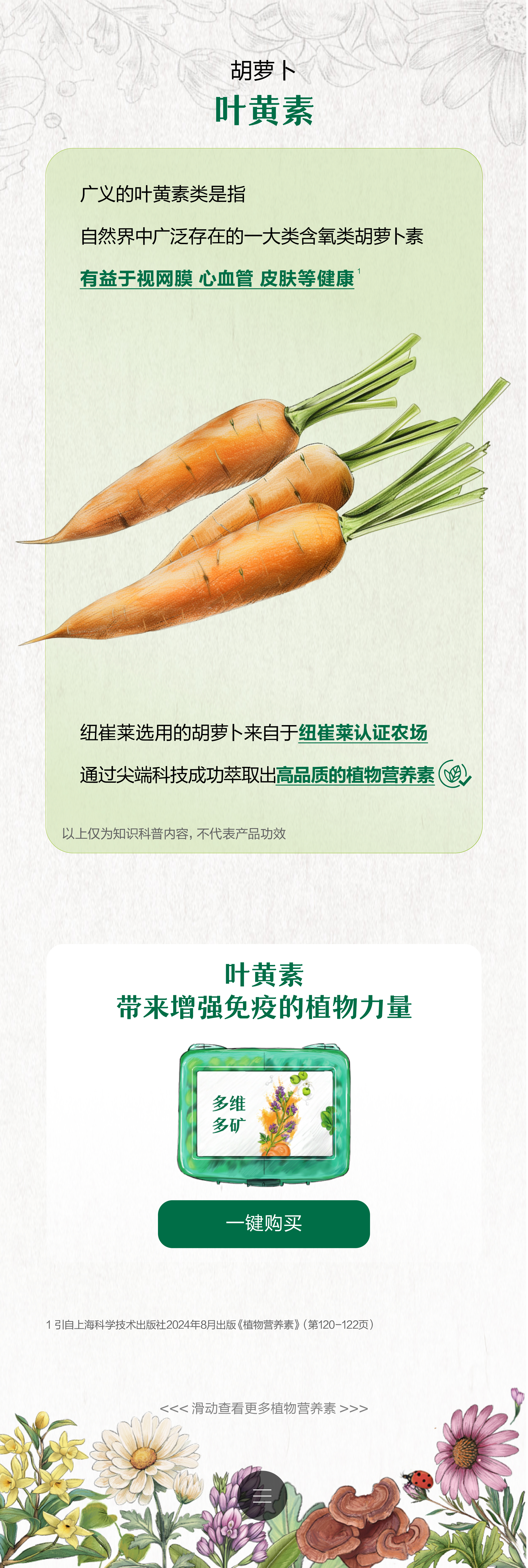 纽崔莱选用的胡萝卜来自于纽崔莱认证农场通过尖端科技成功萃取出高品质的植物营养素
