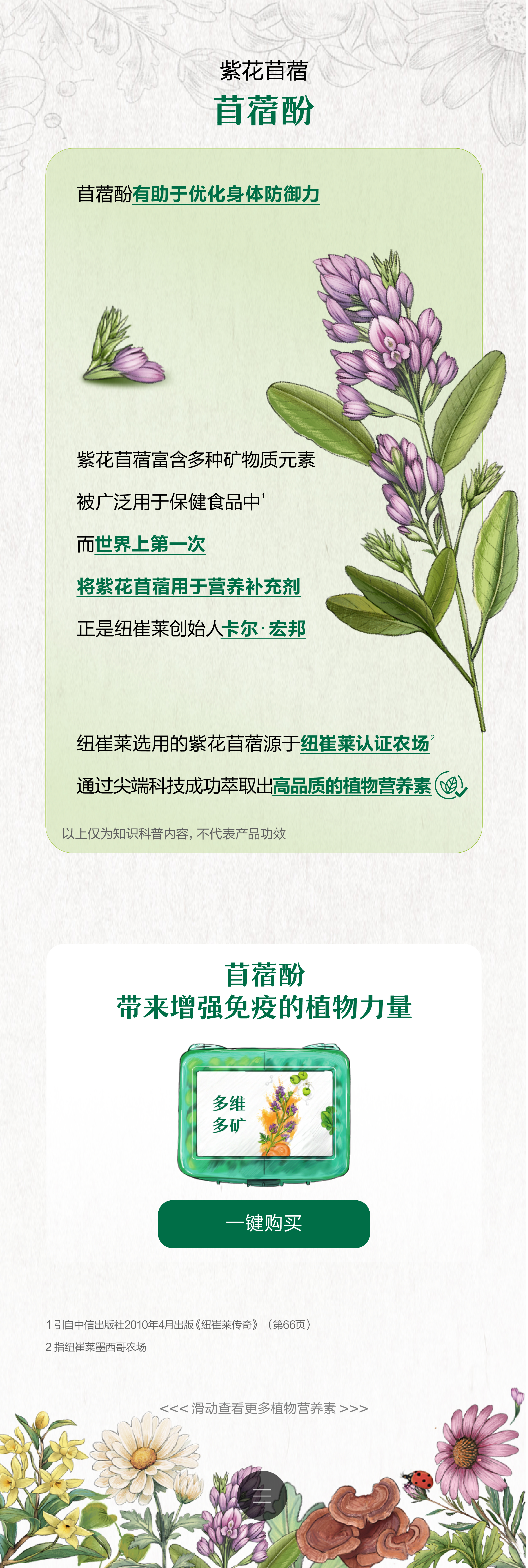 而世界上第一次将紫花苜蓿用于营养补充剂正是纽崔莱创始人卡尔·宏邦