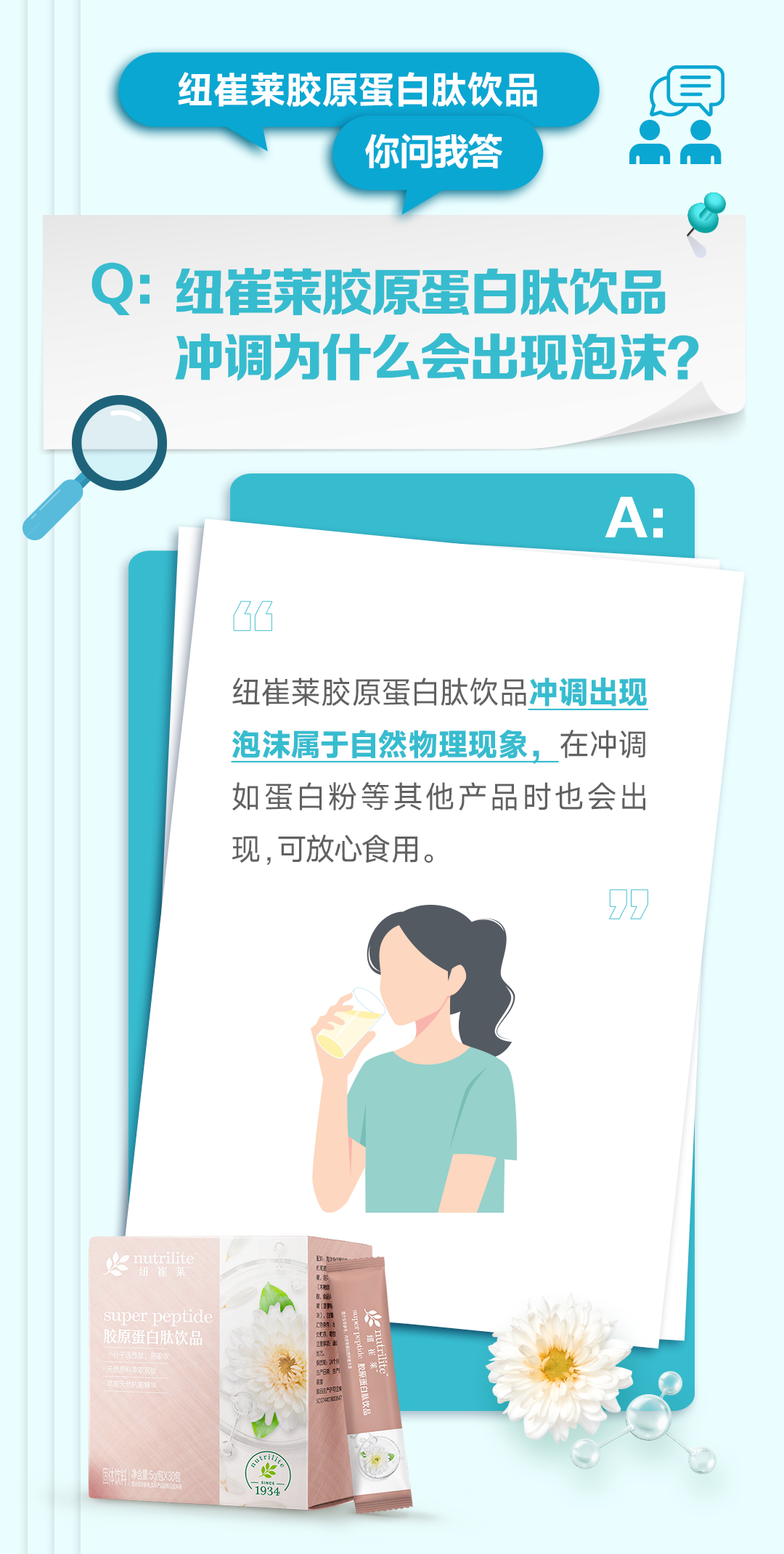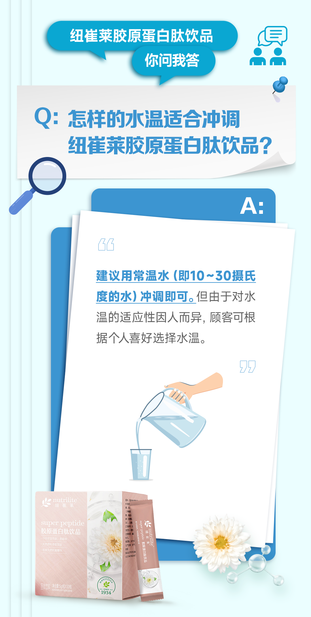 补充胶原蛋白,吸收效率很重要。胶原蛋白肽的分子量远远小于1000道尔顿,本身就是2-3个氨基酸,能直达小肠直接吸收,对皮肤需要的“弹性”氨基酸进行直接补充,更快捷有效。纽崔莱胶原蛋白肽饮料不仅是动植物双肽结合,还添加天然杭菊提取物,促进胶原蛋白生成的同时还能抗氧化,一举多得。而且小小一条,随时都能给皮肤补充营养~