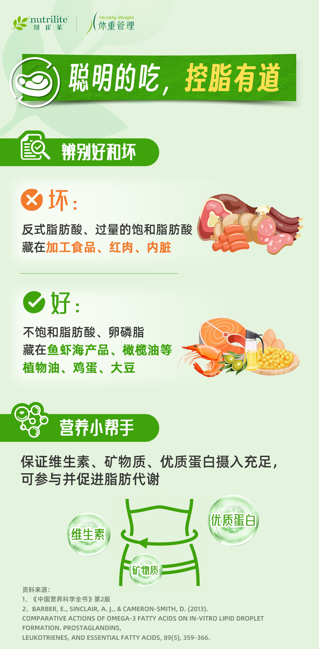保证维生素、矿物质、优质蛋白摄入充足, 可参与并促进脂肪代谢