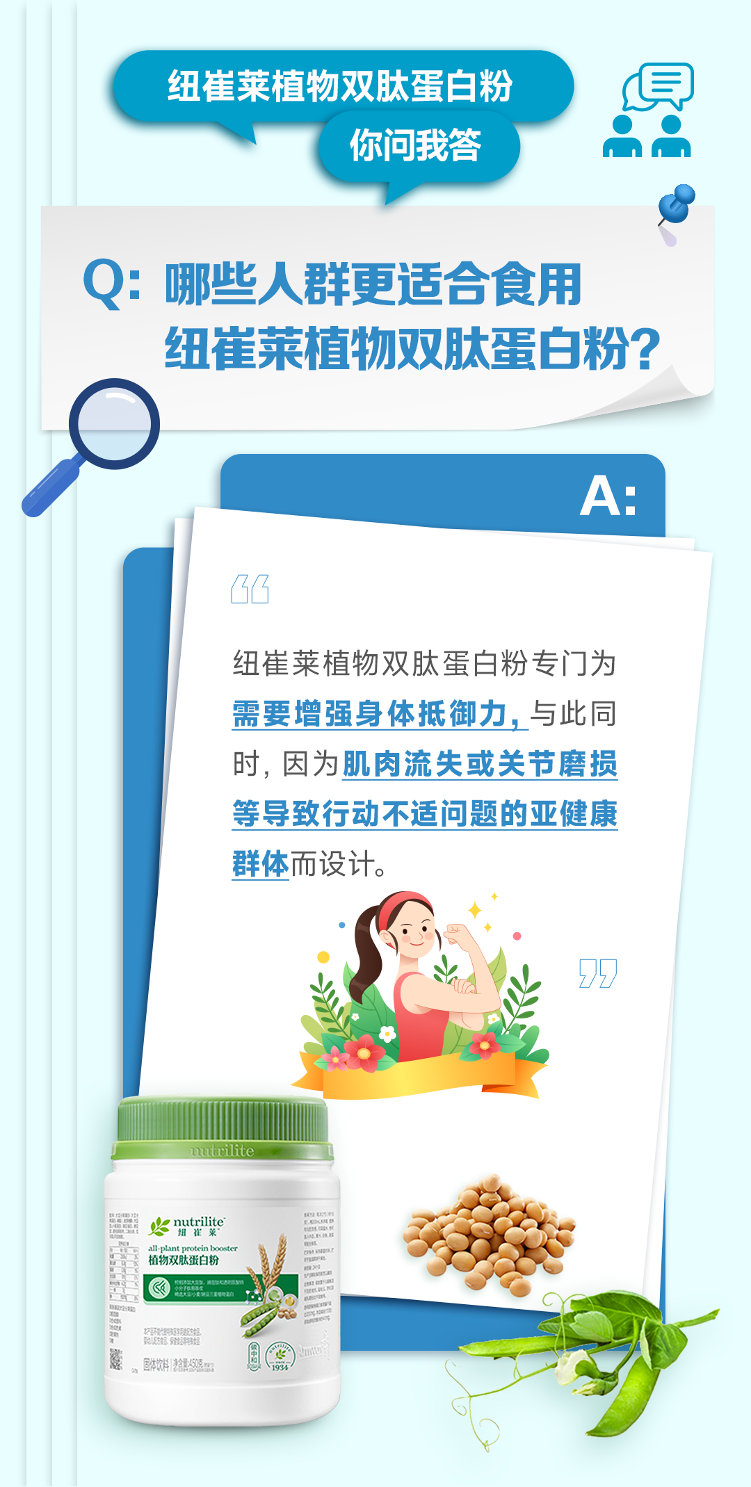 大家好,我是你身体里的肌肉银行。今天,我将公开我的存肌秘籍,指导大家通过营养和运动的双重努力,将零花钱账户转化为定期存折,实现从年轻到老年都结实的目标。基础的营养由专人管理,核心的本金——我的肌肉账户能否积累足够的余额,取决于蛋白质的存款是否充足,以及维生素D的调控能力是否强大。中国居民膳食指南建议,成年人每日应存入55到65克蛋白质,而老年人则需按照每公斤体重存入1.17克。若缺少这笔启动资金,我的肌细胞就像没有食材的厨房,无法长出新的肌肉。在选择蛋白质时,应优先考虑优质的大豆分离蛋白,这种蛋白质不仅具有接近100%的消化吸收率,而且不含脂肪,相比通过红肉账户存款更加健康。对于喜欢健身或年纪较大的人群,还可以开通快速转账。科学家的实验表明,存在账户中的豌豆肽和大豆肽相较于普通蛋白质,其资金到账速度,即吸收效率,快了28.5%。当肌肉蛋白按照3比1的比例存入身体时,就像给肌肉账户启动了加速模式。遵循这一比例存储的人,其肌肉纤维的数量和体积比不遵循此比例的人增长了整整47%。双肽蛋白如同智能存款机,不仅将这对黄金搭档按最佳比例打包,还搭配了充足的优质蛋白基础存款。这样一来,既为肌肉账户存入本金,又启动了加速器,不仅促进肌肉更快增长,还能确保现有肌肉量的稳定,再也不用担心肌肉偷偷缩水了。维生素D扮演着理财管家的角色。即使存有足够的蛋白质,没有维生素D的助力,收益也会极其微薄。研究指出,缺乏维生素D的人其资产缩水的风险是常人的五倍。因此,选择正确的管家至关重要。通过运动积累财富,就像让肌肉账户实现复利效应。仅仅存钱而不进行管理,就如同拥有一个停滞的账户。虽然抗阻训练、举重或使用弹力带能增强存钱的动力,但必须强调,仅有意愿是不够的,还需要资金的支持。运动后及时储蓄,并补充乳清蛋白,能有效提升存款的增长速度。这就是我维持强壮、遵循储蓄账户黄金法则的方式。有了营养和运动的双重保障,我能够陪你从年轻到老年,随时拥有轻松提重物、自由爬楼梯的力量和灵活的身手。相信身体的力量肌肉篇,黄金法则,打造坚实存肌力