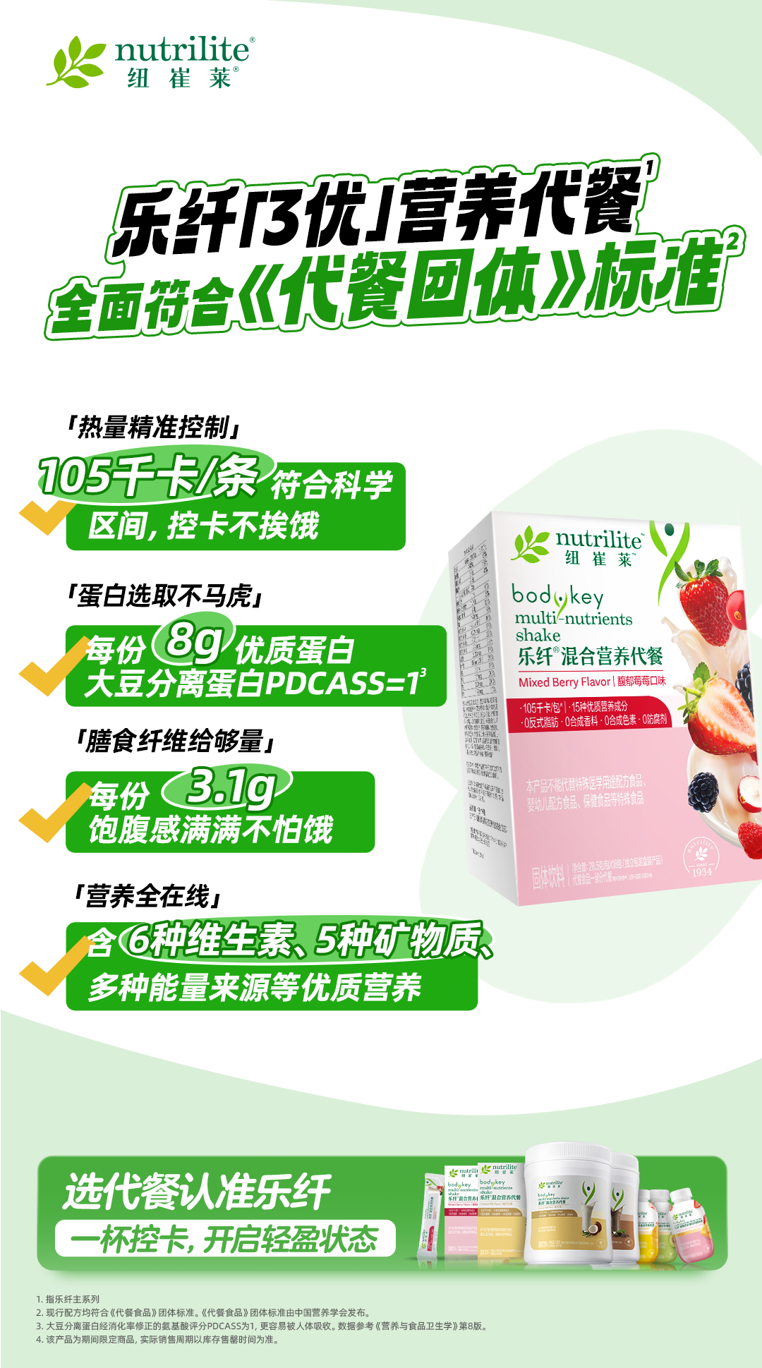 ✅乐纤「3优」营养代餐,热量控制在105 kcal
