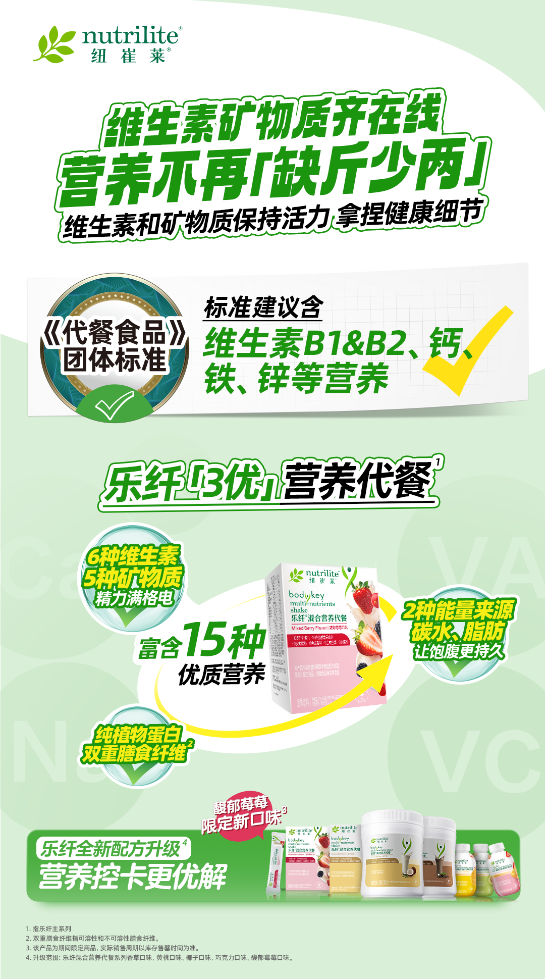 ✅乐纤「3优」营养代餐含多种维生素、矿物质
