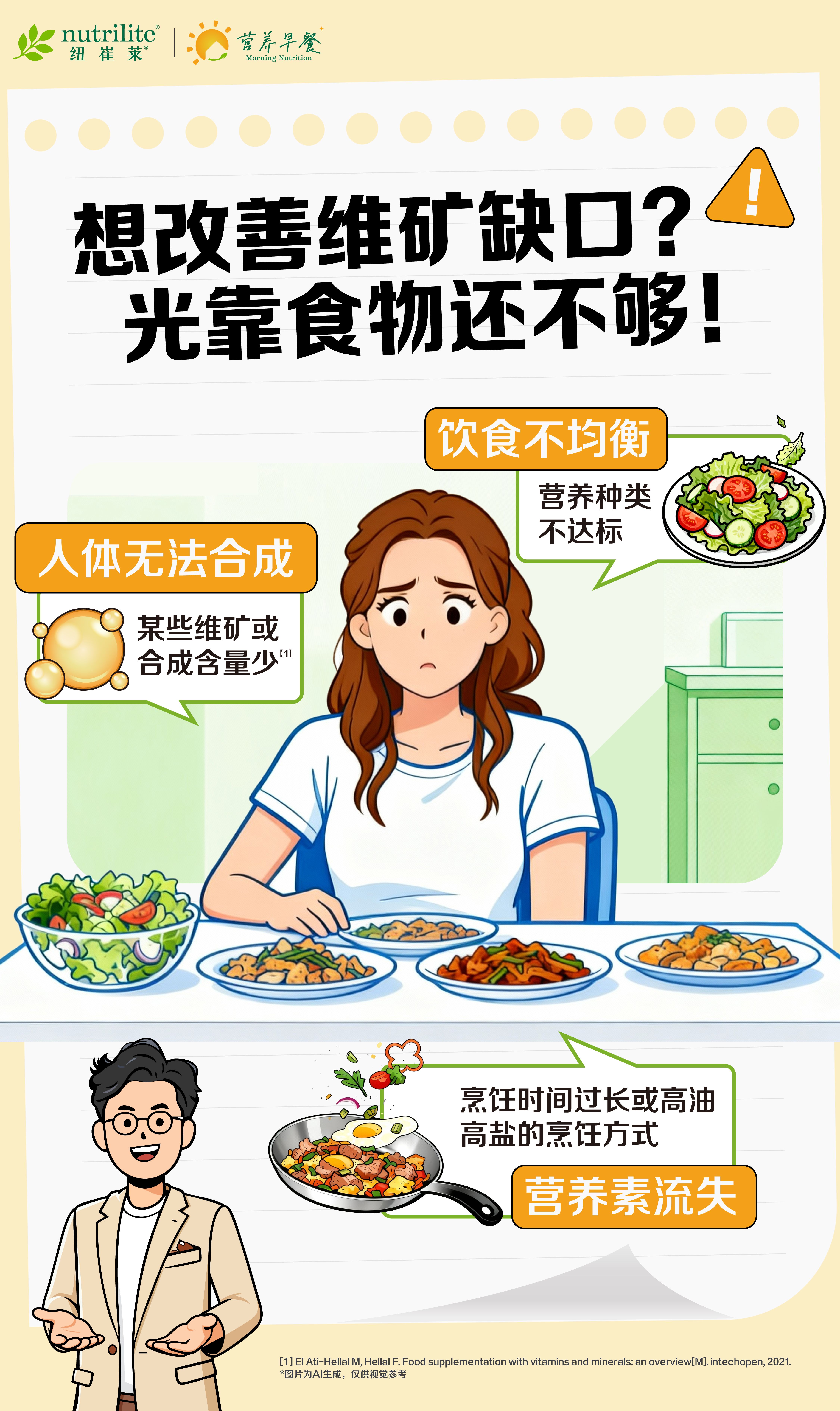 🥗再加上饮食不均衡、烹饪不合理会导致营养流失,维矿摄入不足