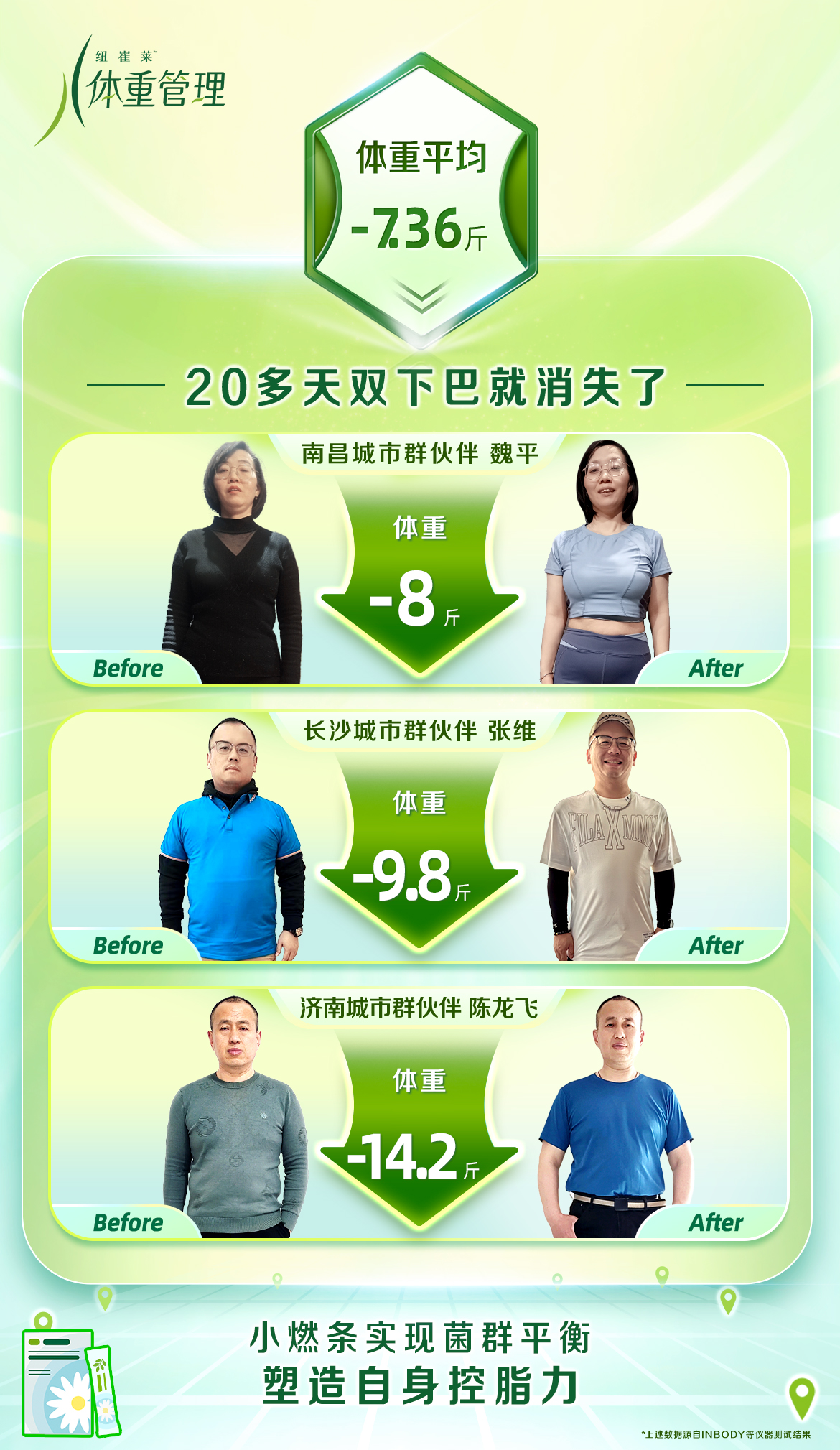 🆙体验官创造平均减重7.36斤,平均腰围减少7.08cm的超燃战绩❗