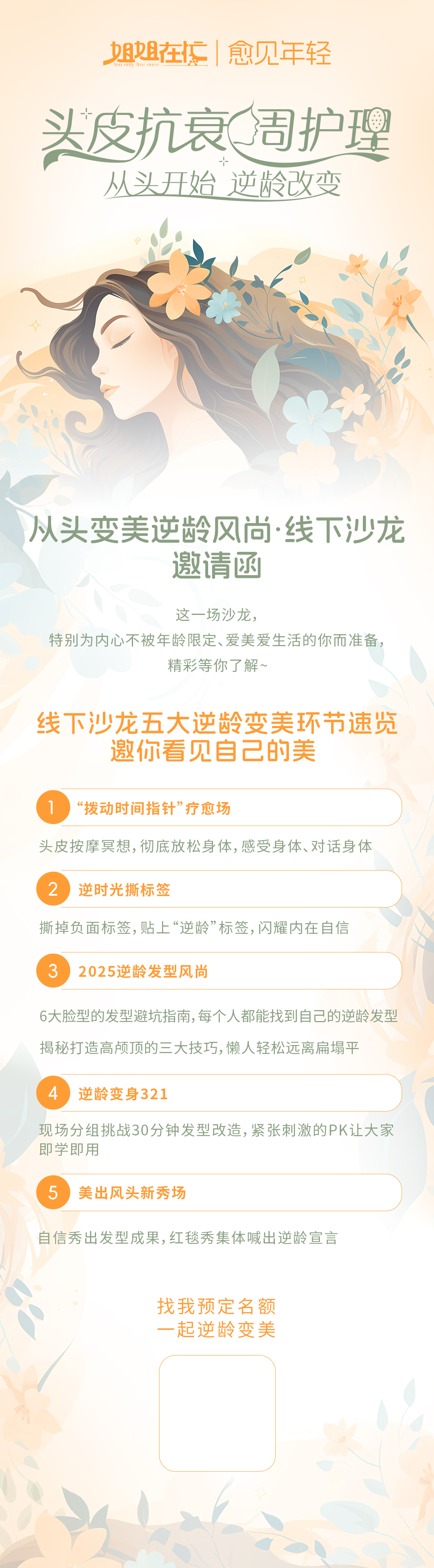 姐妹们,临睡前再悄悄分享一个好消息😊~我们即将举办一场线下沙龙派对《从头变美·逆龄风尚秀》✨这可不是普通的聚会哦,是专为我们美丽的闺闺们定制的一场从头逆龄改变、绽放自己的秀场。