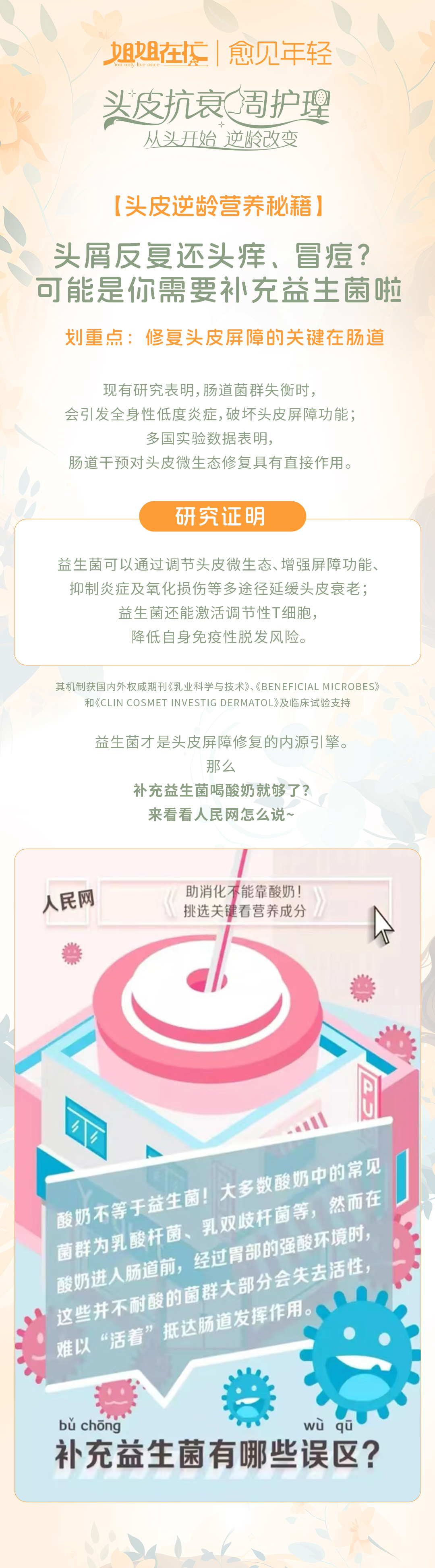 益生菌居然能影响头皮健康,没想到吧~但是根据微生态学、临床医学的研究,益生菌确实能够帮助头皮微生态维稳,增强头皮屏障,来了解吧👇
