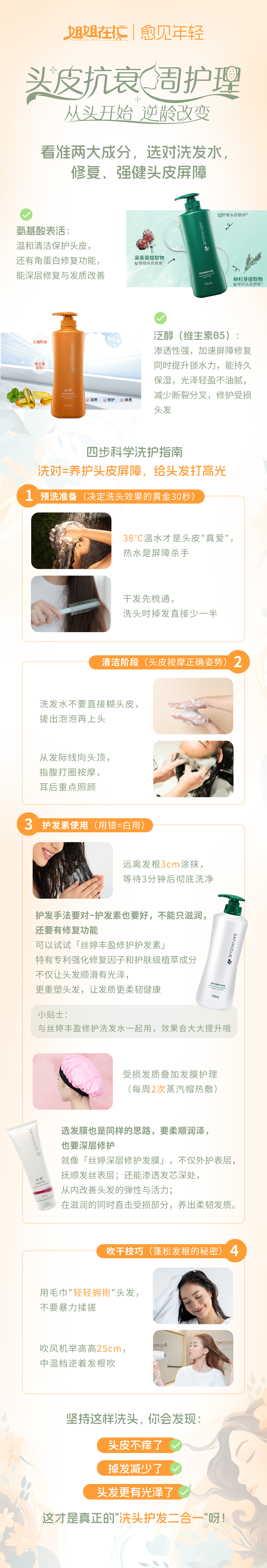 小贴士:与丝婷丰盈修护洗发水一起用,效果会大大提升哦