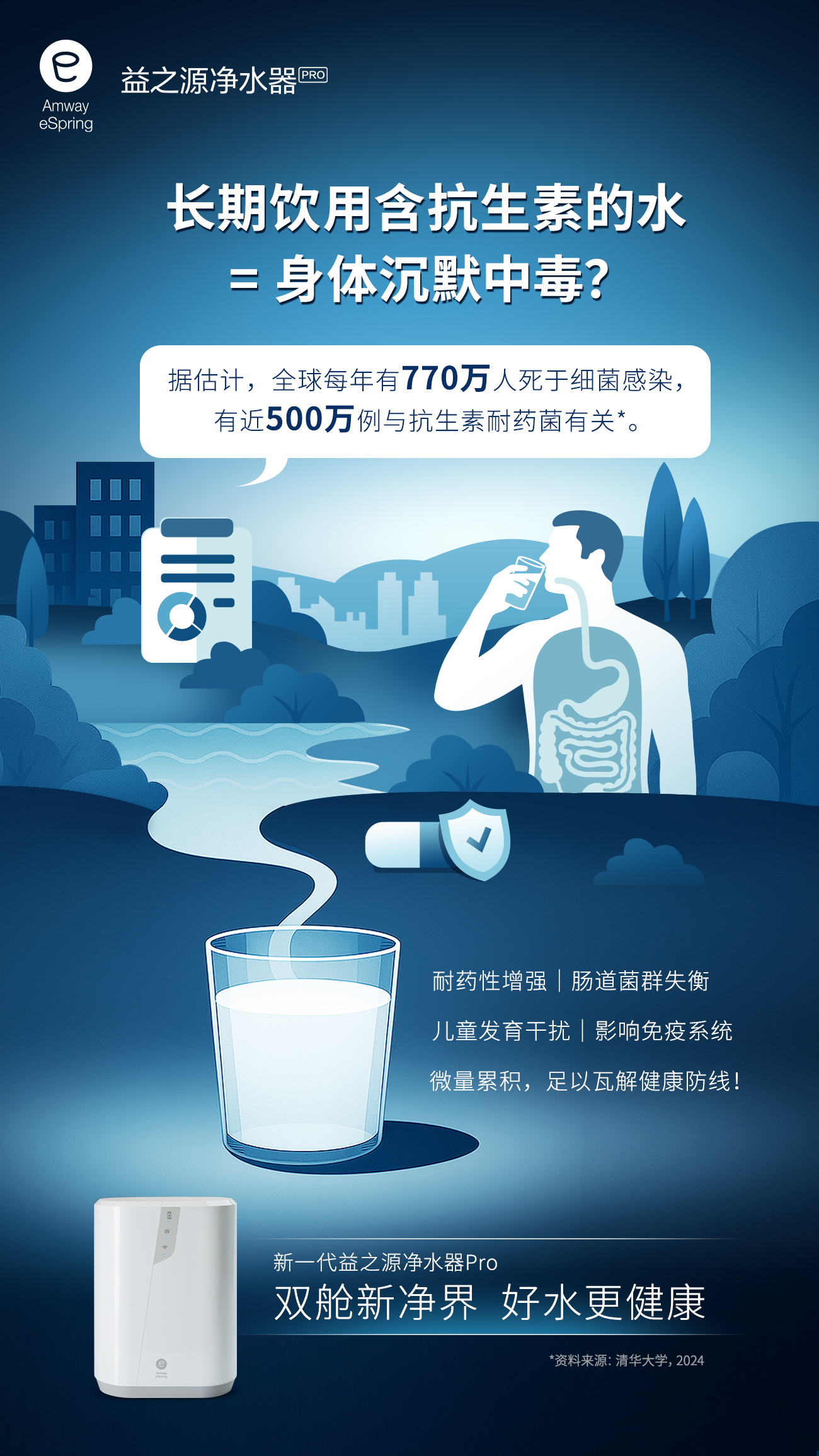长期饮用含有抗生素的水——四重暴击: