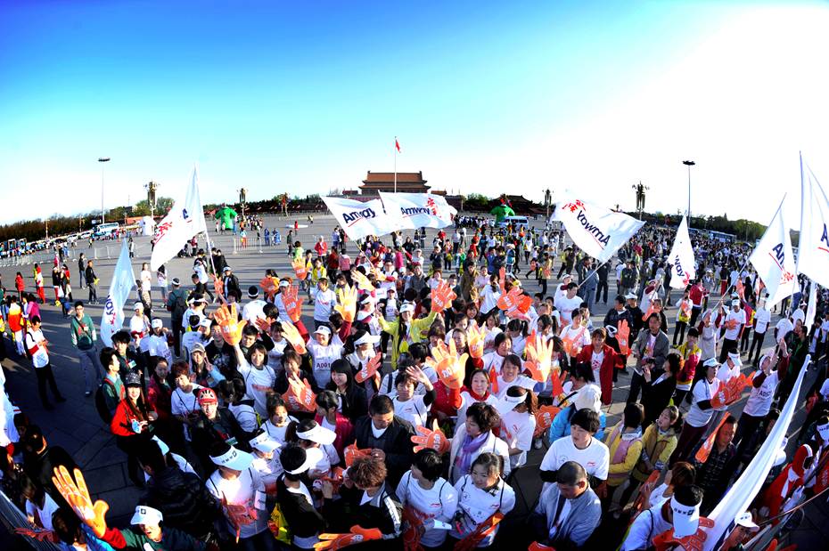 - 2013年4月14日星期天,一年一度的“安利纽崔莱北京国际长跑节”又在天安门拉开了帷幕,两万余名国内国外的大爷大妈叔叔阿姨哥哥姐姐弟弟妹妹们报名参加,赶着早上7、8点钟的太阳,聚集在天安门广场,为了大家共同的爱好,奔跑在4月微凉的春风里。