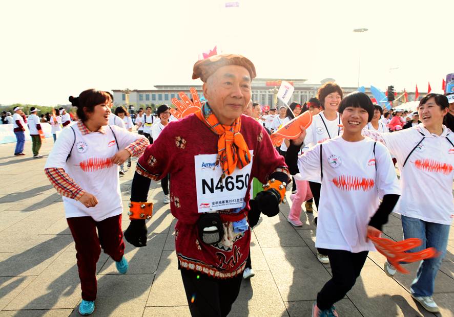 - 没事儿, 跑两步!(1/9)2013年4月14日星期天,一年一度的“安利纽崔莱北京国际长跑节”又在天安门拉开了帷幕,两万余名国内国外的大爷大妈叔叔阿姨哥哥姐姐弟弟妹妹们报名参加,赶着早上7、8点钟的太阳,聚集在天安门广场,为了大家共同的爱好,奔跑在4月微凉的春风里。