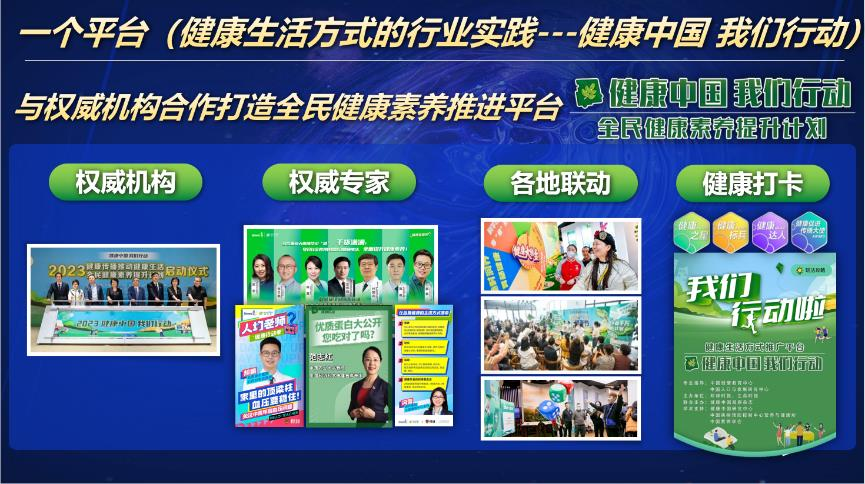安利还联合权威机构、媒体、专家等各界力量,搭建了“健康中国 我们行动-全民健康素养提升计划”平台,汇聚专家课程及健康生活方式养成的各项工具,号召大众以健康社群的形式组队打卡,并在全国范围内积极开展营养早餐、活力抗衰、体重管理等不同主题的数十万个“大健康社群”,与消费者共同学习、互相督促、彼此鼓励,让健康走进千家万户。